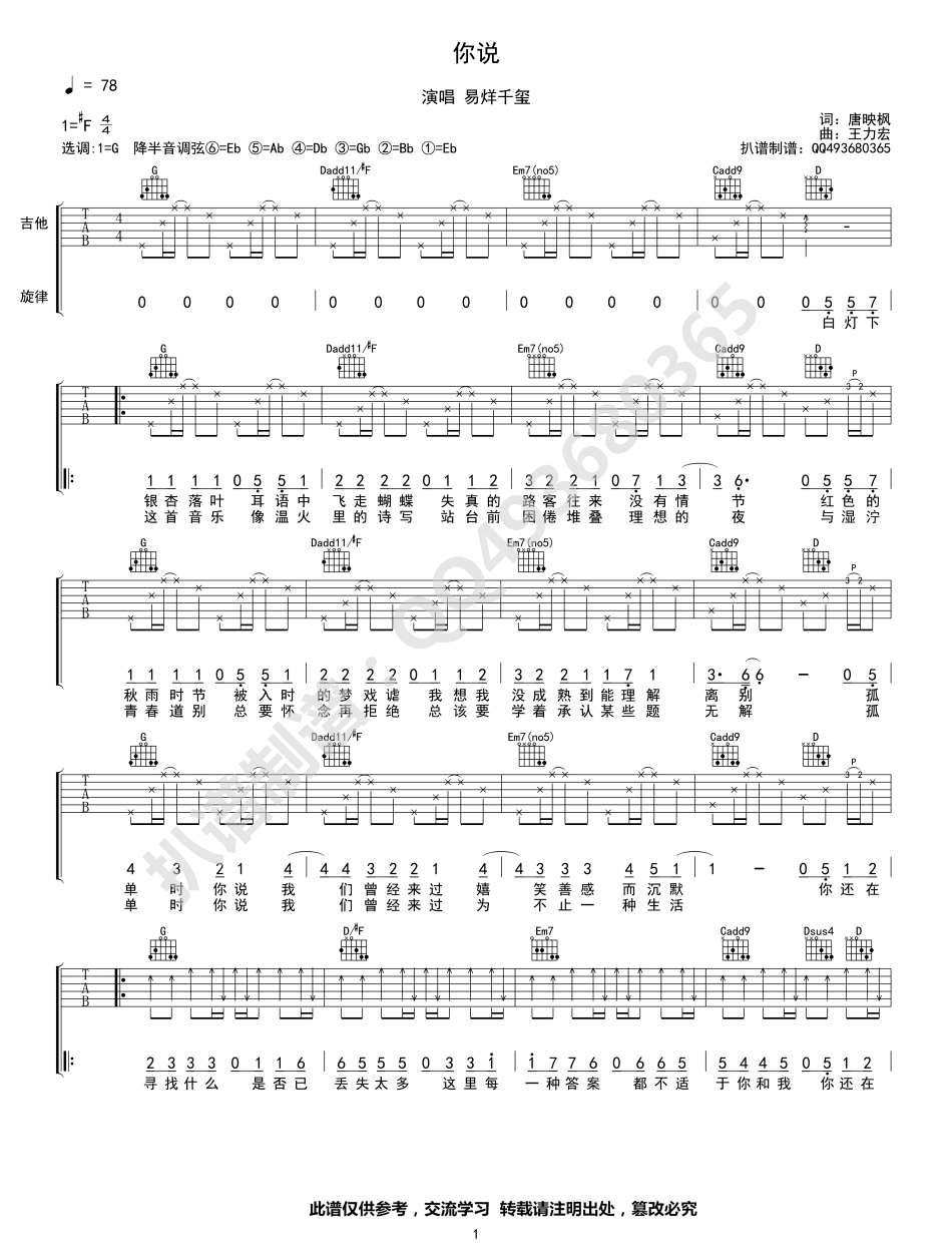 当前位置:琴谱网>吉他弹唱>你说