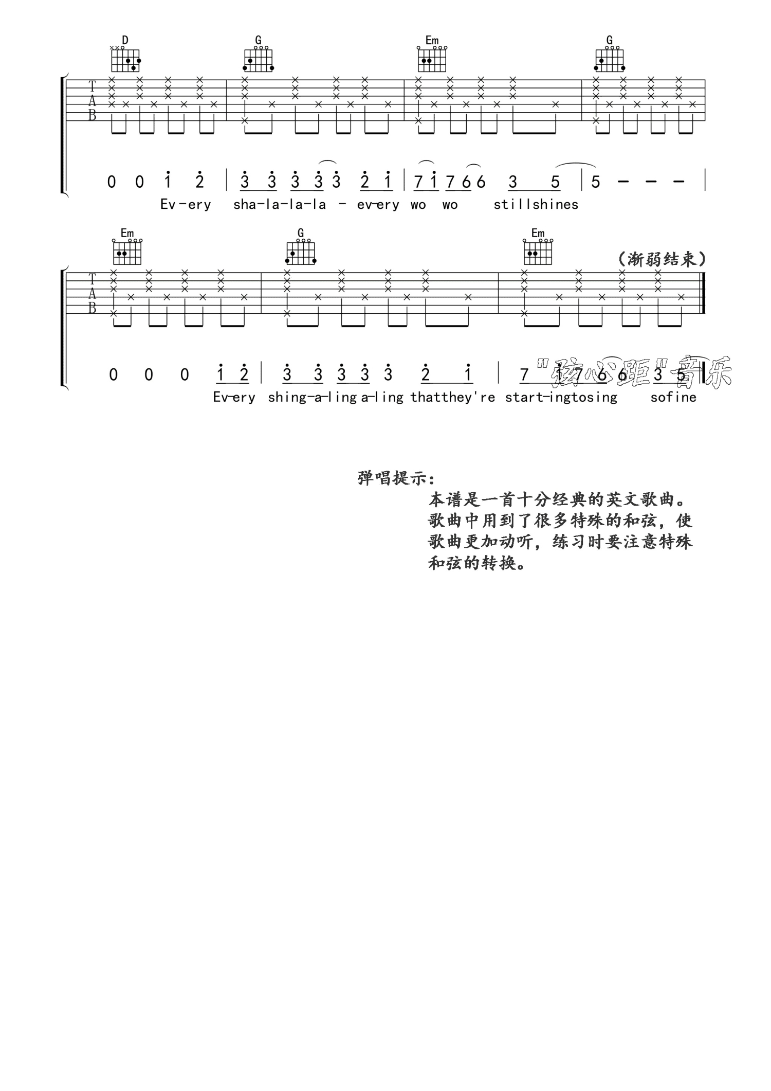 曲谱介绍: 英文歌曲吉他弹唱