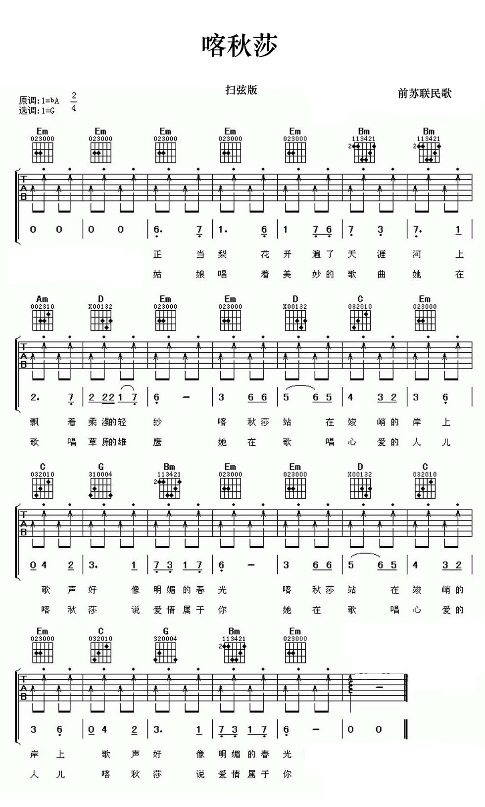 喀秋莎吉他谱 - 前苏联歌曲 - 吉他弹唱谱