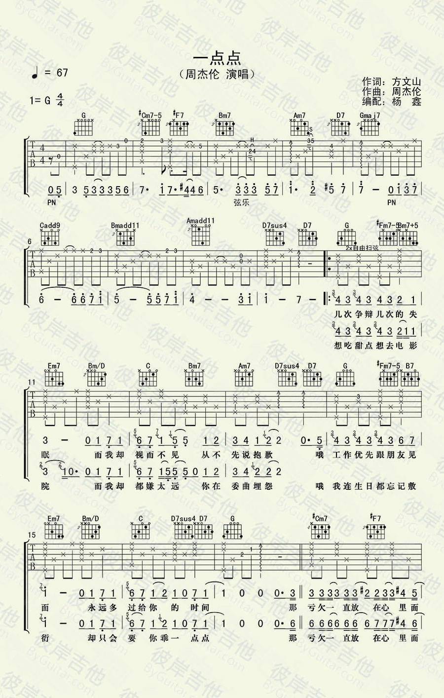当前位置:琴谱网>吉他弹唱>一点点 周杰伦 G调图片