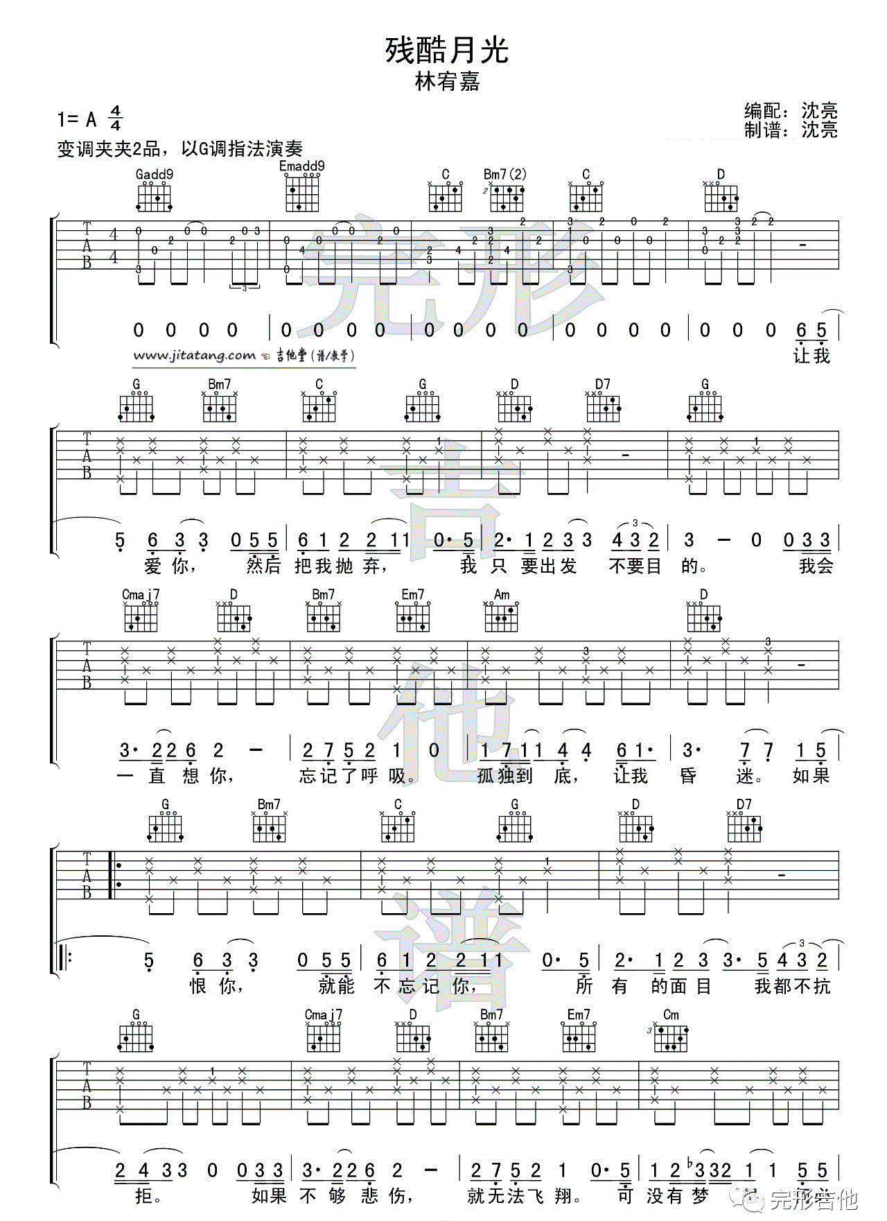 残酷月光 林宥嘉 A调六线吉他谱 - 残酷月光 - A调吉他弹唱谱