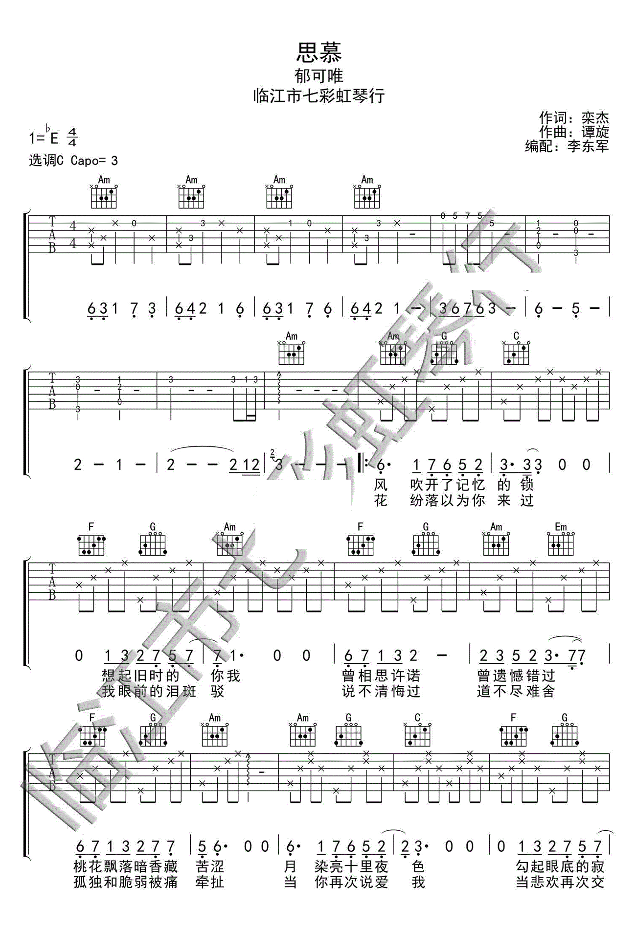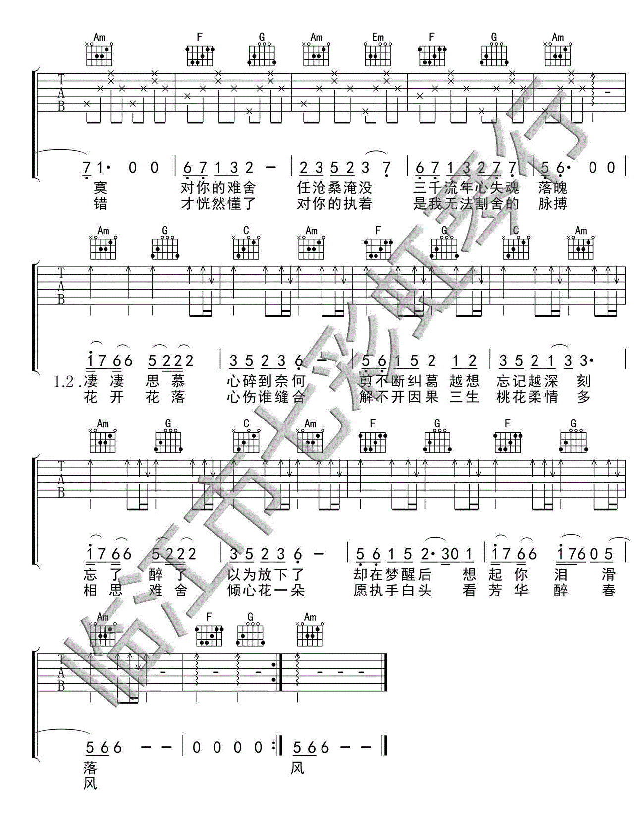 三生三世十里桃花吉他谱 - 思慕 - 吉他弹唱谱