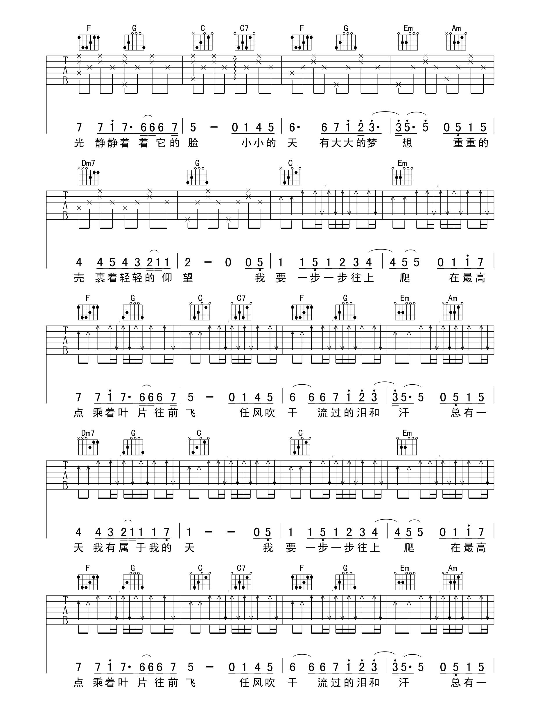 当前位置:琴谱网>吉他弹唱>蜗牛 周杰伦 C调六线