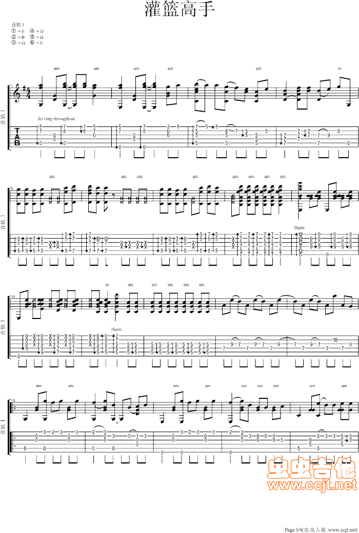 当前位置:琴谱网>吉他弹唱>灌篮高手片头单吉他版