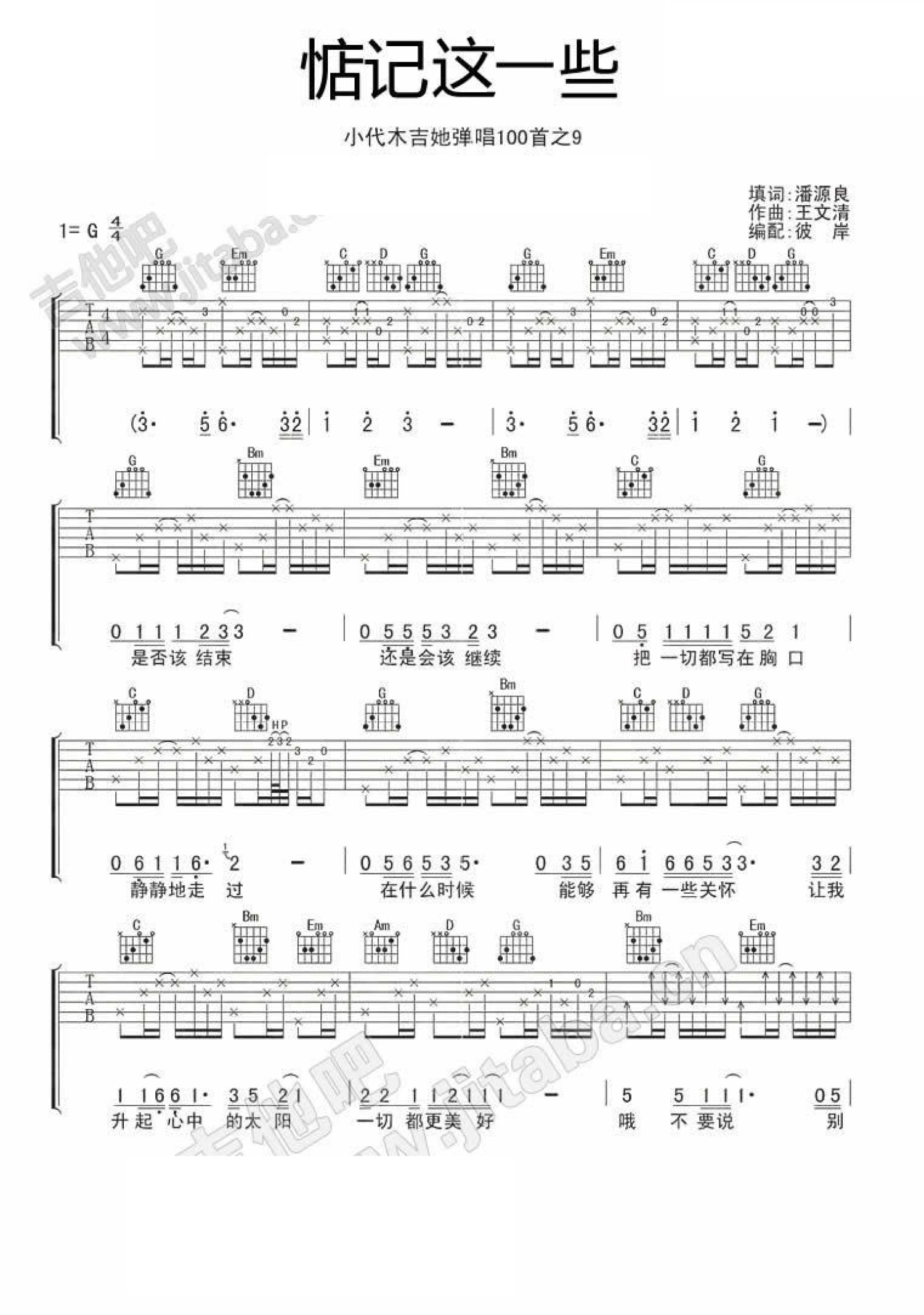 惦记这一些吉他谱 - 木吉她小代 - G调吉他弹唱谱