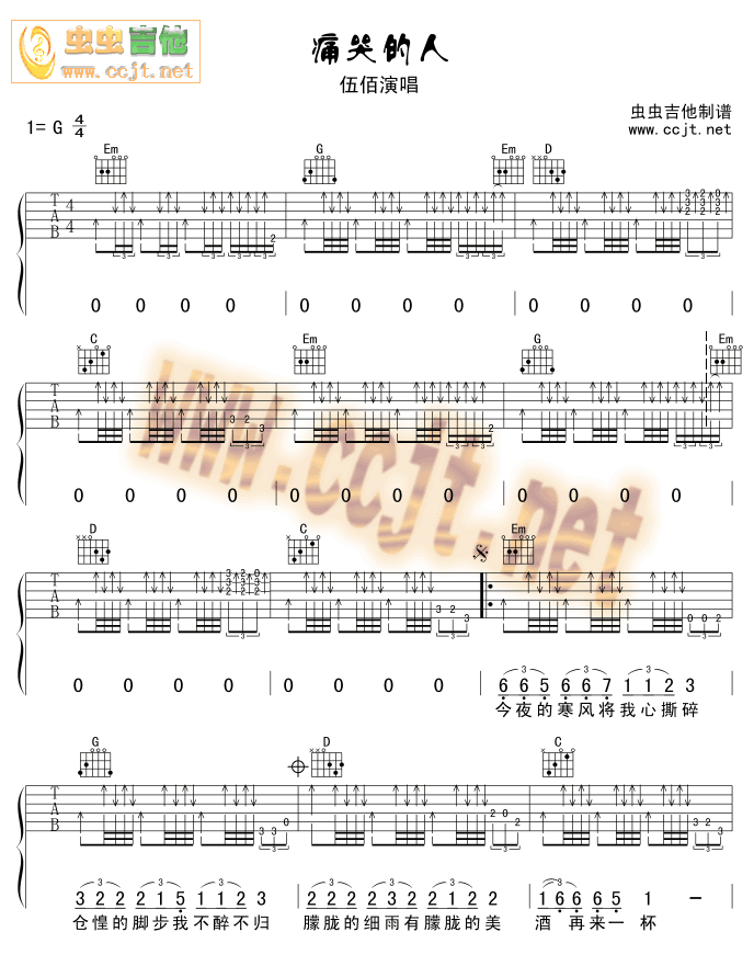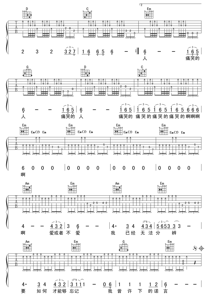 曲谱介绍: 《痛哭的人》吉他弹唱谱,共有4张高清图谱。