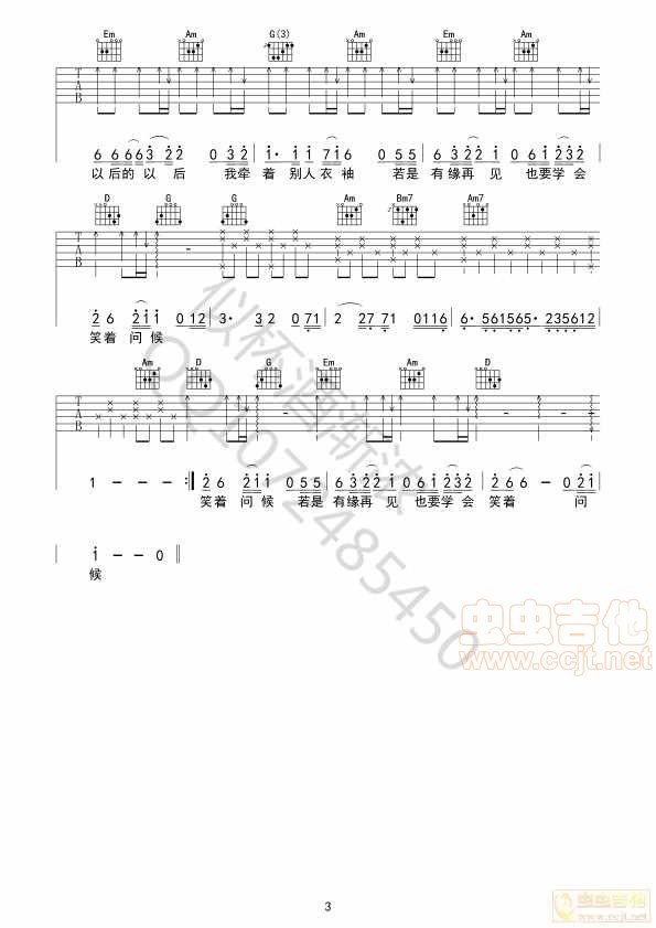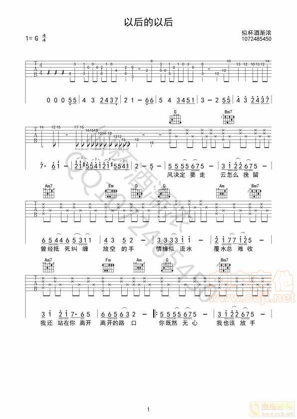 曲谱介绍: 《以后的以后》吉他弹唱谱,采用G调指法编配,共有3张高清图谱。
