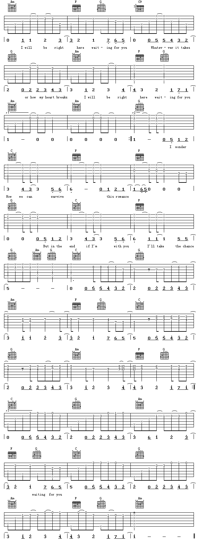 当前位置:琴谱网>吉他弹唱>Right Here Wait For You