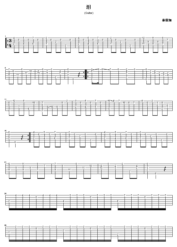 泪吉他谱 - 吉他弹唱谱