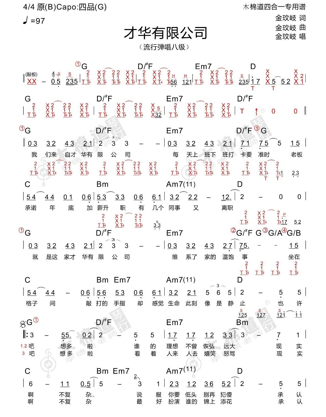 才华有限公司 金玟岐 图片吉他谱 - 才华有限公司 - 吉他弹唱谱