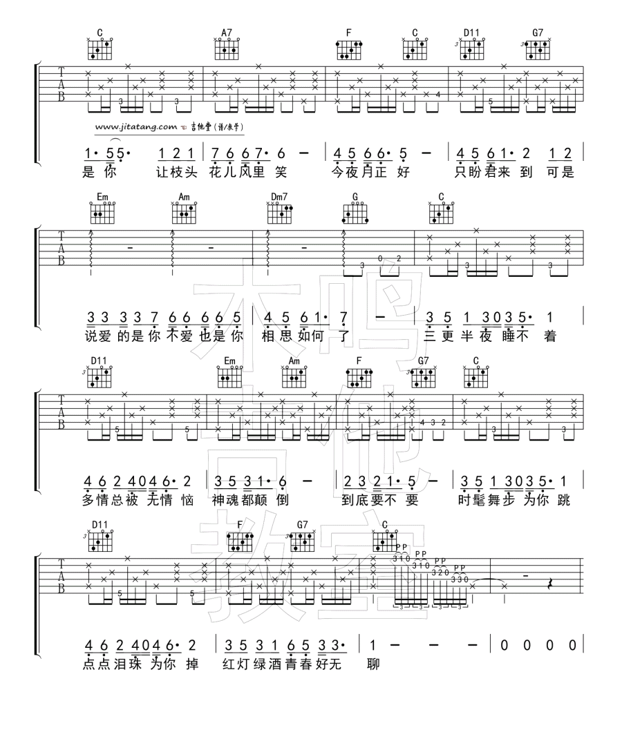 当前位置:琴谱网>吉他弹唱>青春好无聊 左安西西 图片