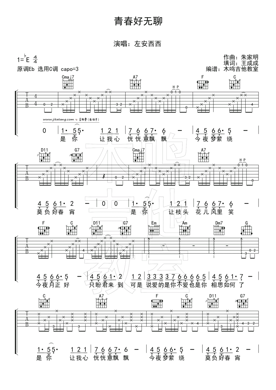 青春好无聊 左安西西 图片吉他谱 - 青春好无聊 - 吉他弹唱谱