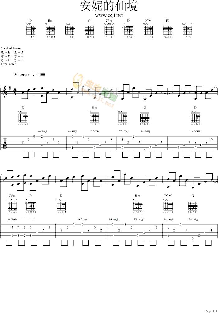 安妮的仙境吉他谱 - 吉他弹唱谱