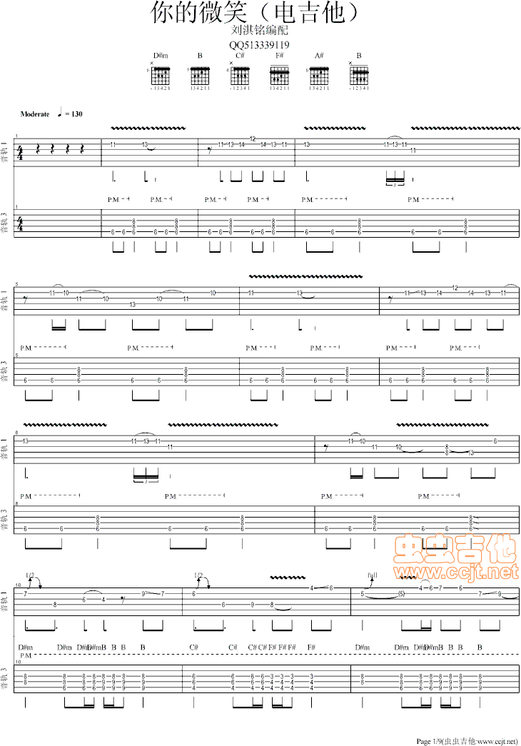 当前位置:琴谱网>吉他弹唱>你的微笑(电吉他)适合乐队排练