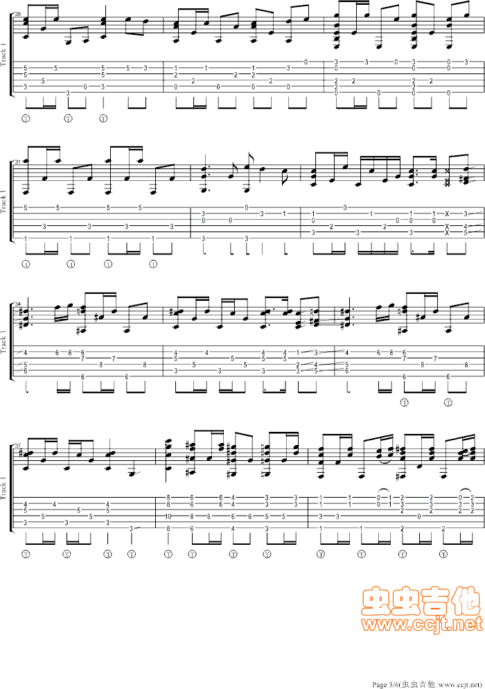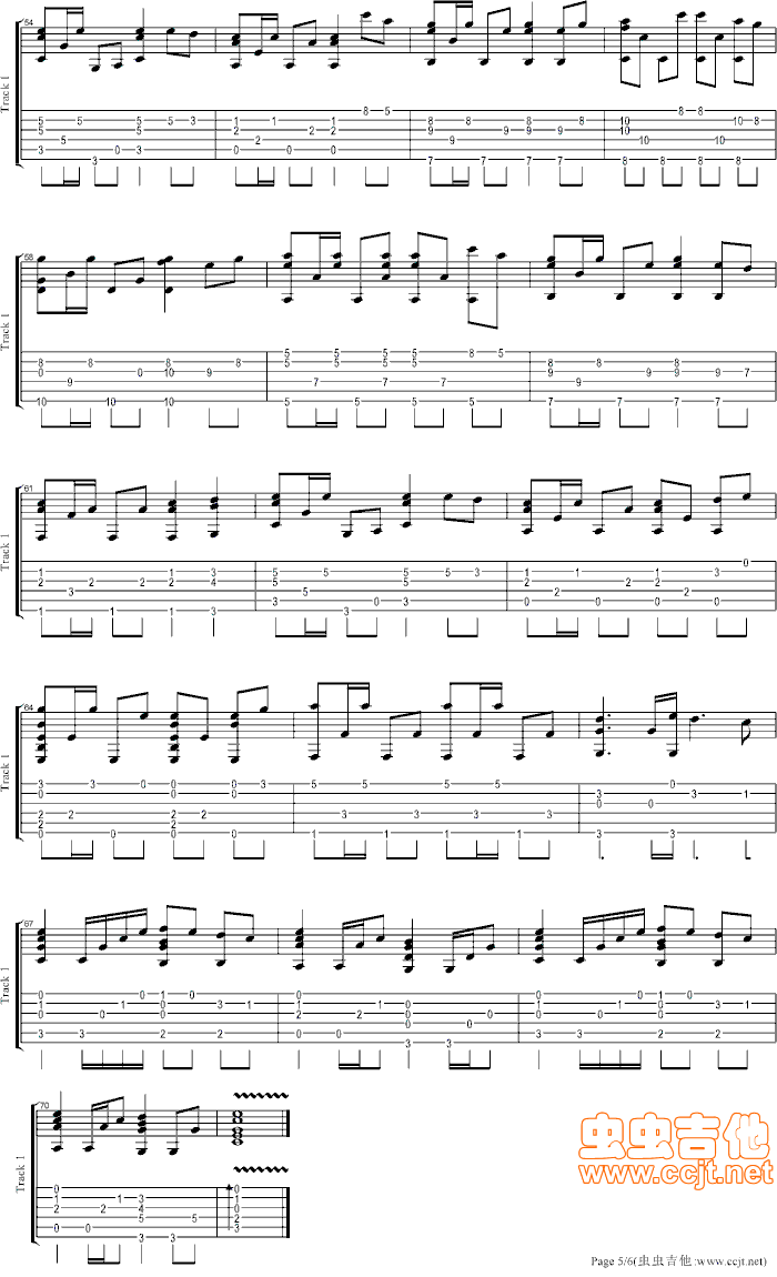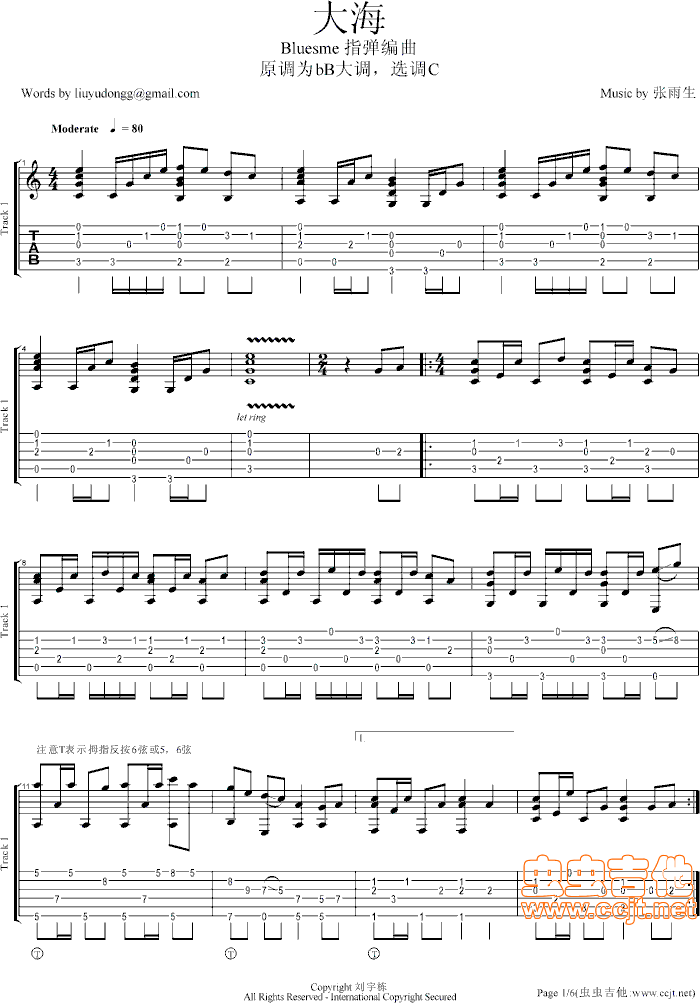 曲谱介绍: 《大海》吉他弹唱谱,共有5张高清图谱。