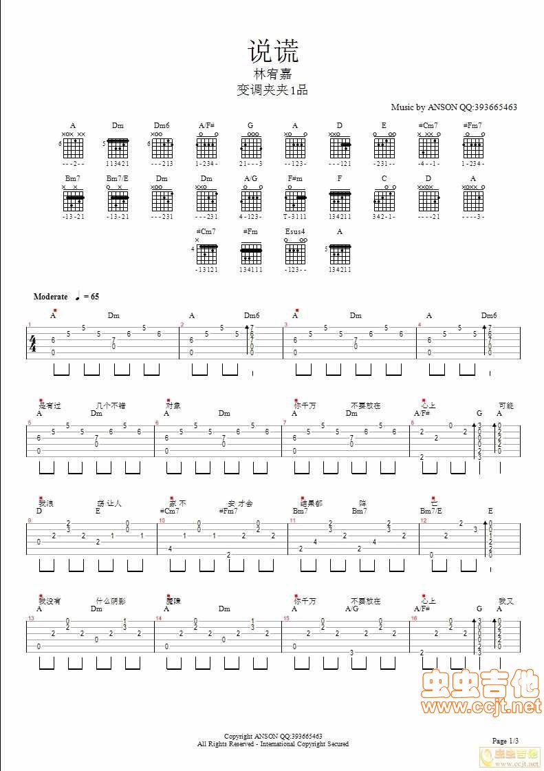 曲谱介绍: 《林宥嘉》吉他弹唱谱,共有3张高清图谱。