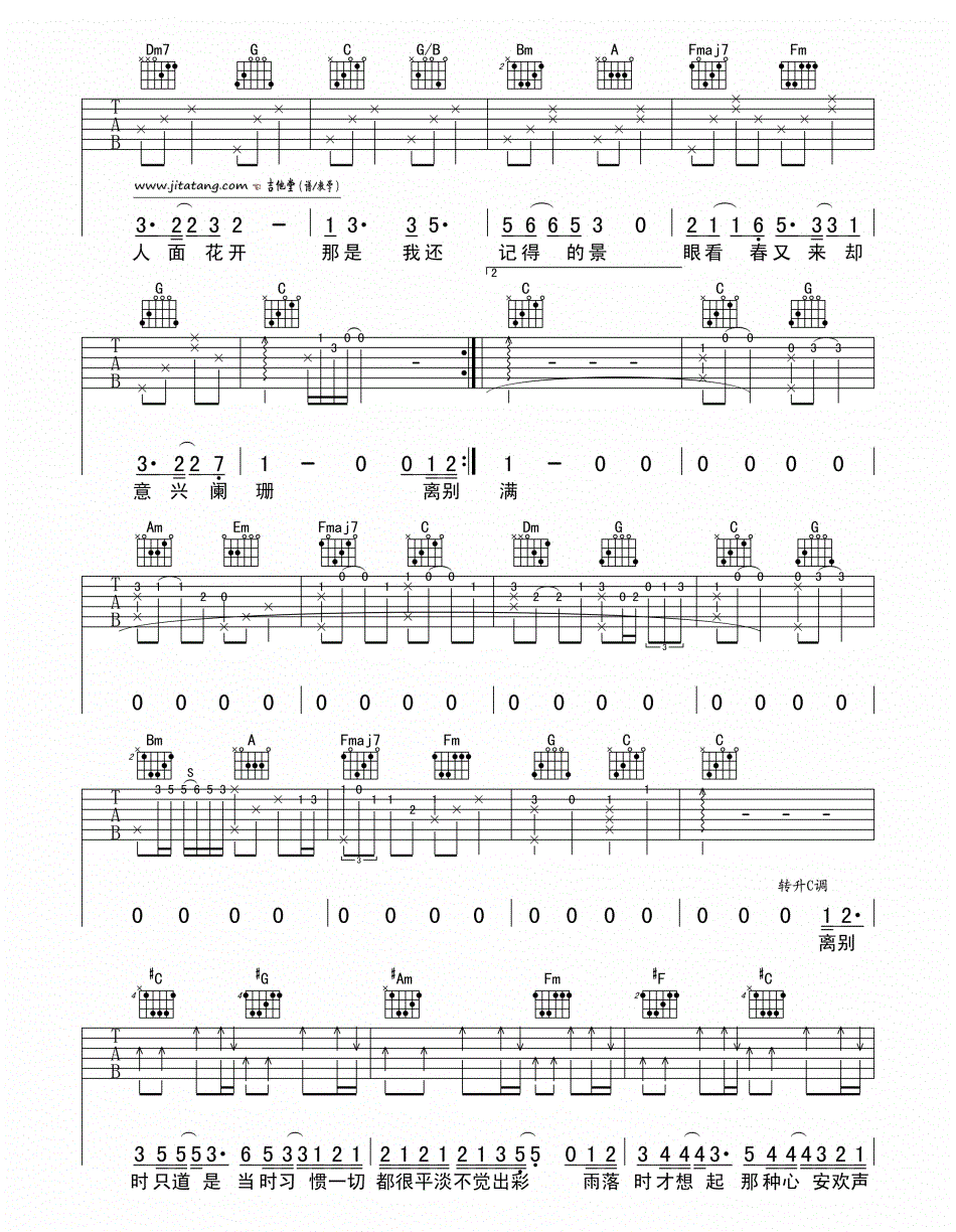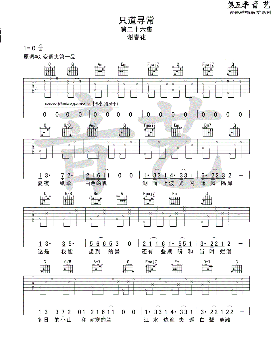 只道寻常 谢春花 C调图片吉他谱 - 只道寻常 - C调吉他弹唱谱