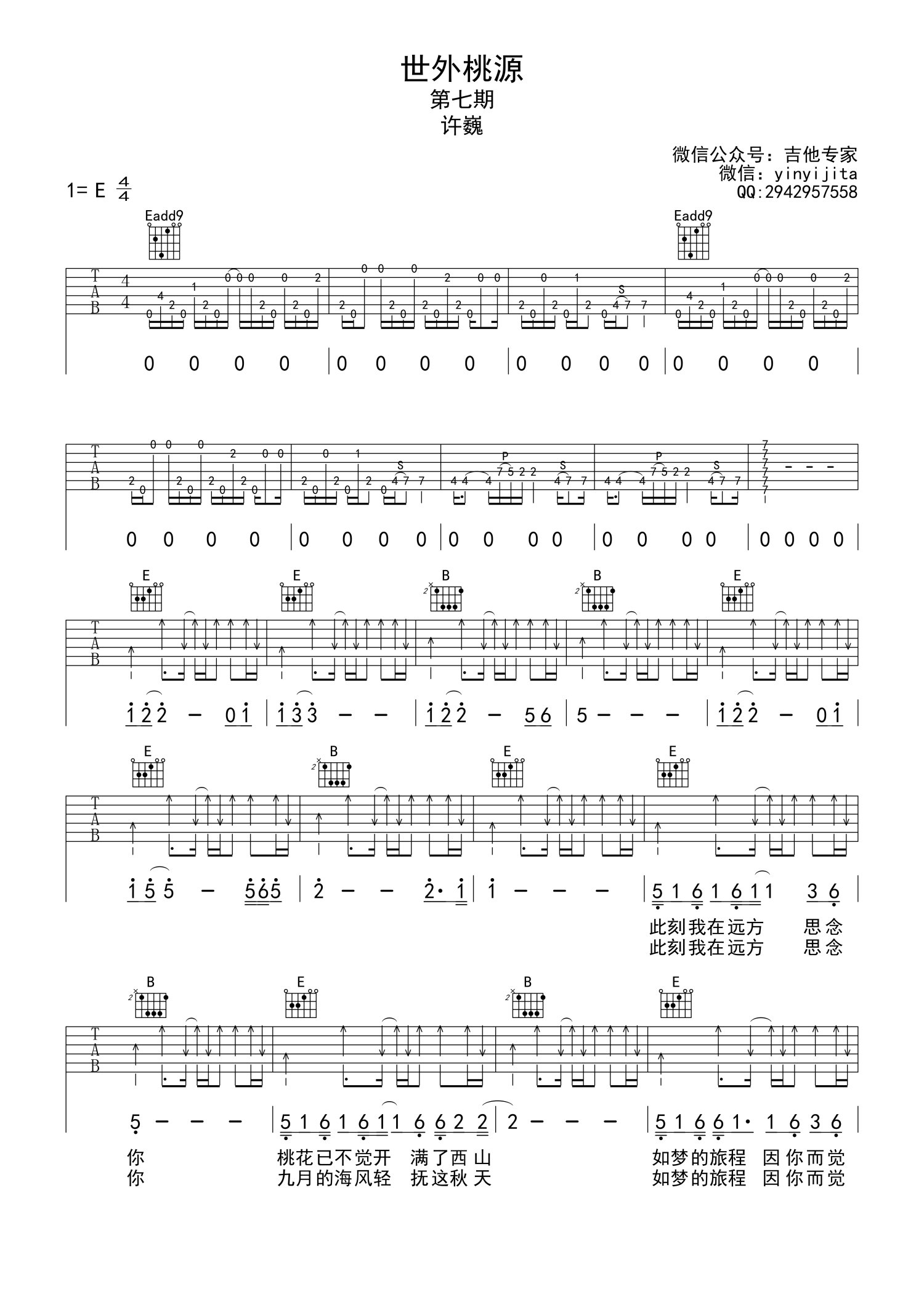 • 世外桃源吉他谱 - 许巍 - E调吉他弹唱谱第1张