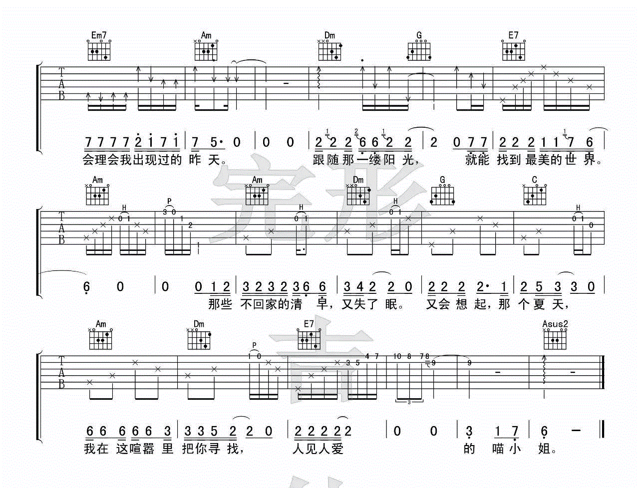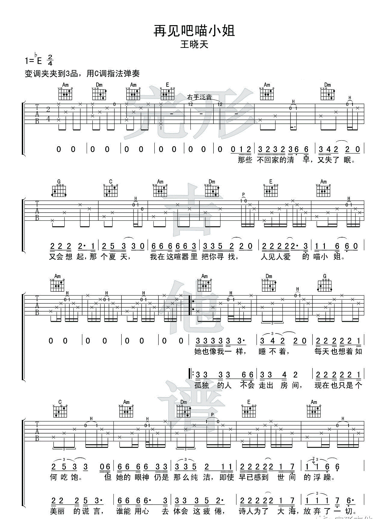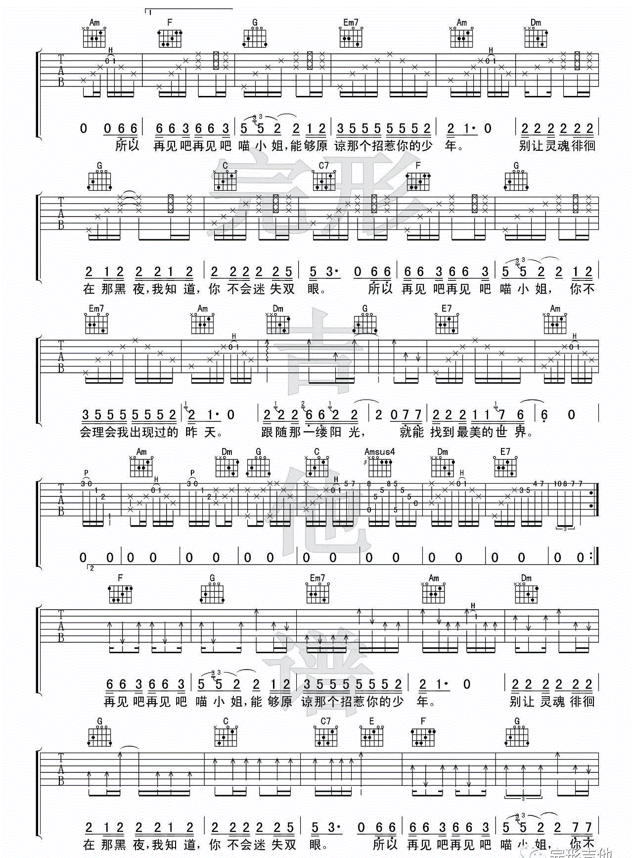 再见吧喵小姐 王晓天 图片吉他谱 - 再见吧喵小姐 - 吉他弹唱谱
