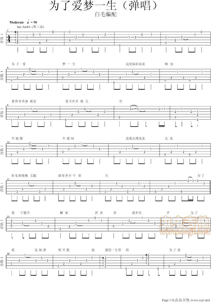 为了爱梦一生吉他谱 - 吉他弹唱谱
