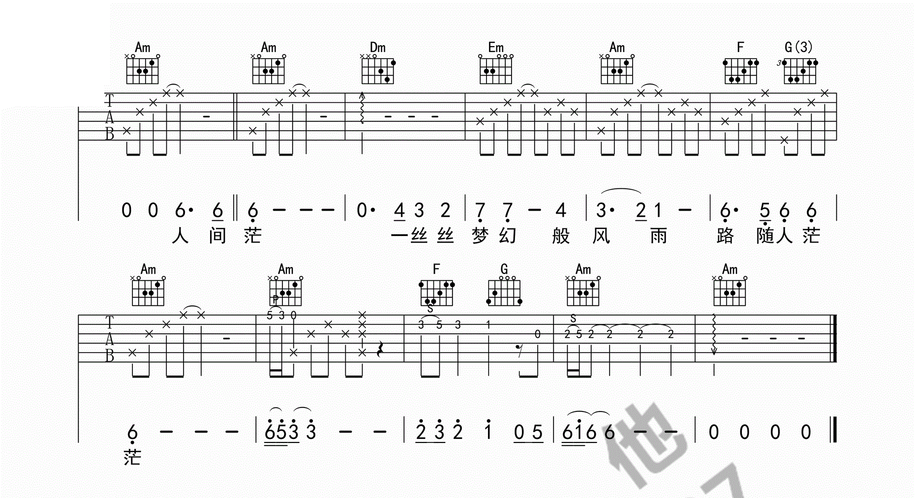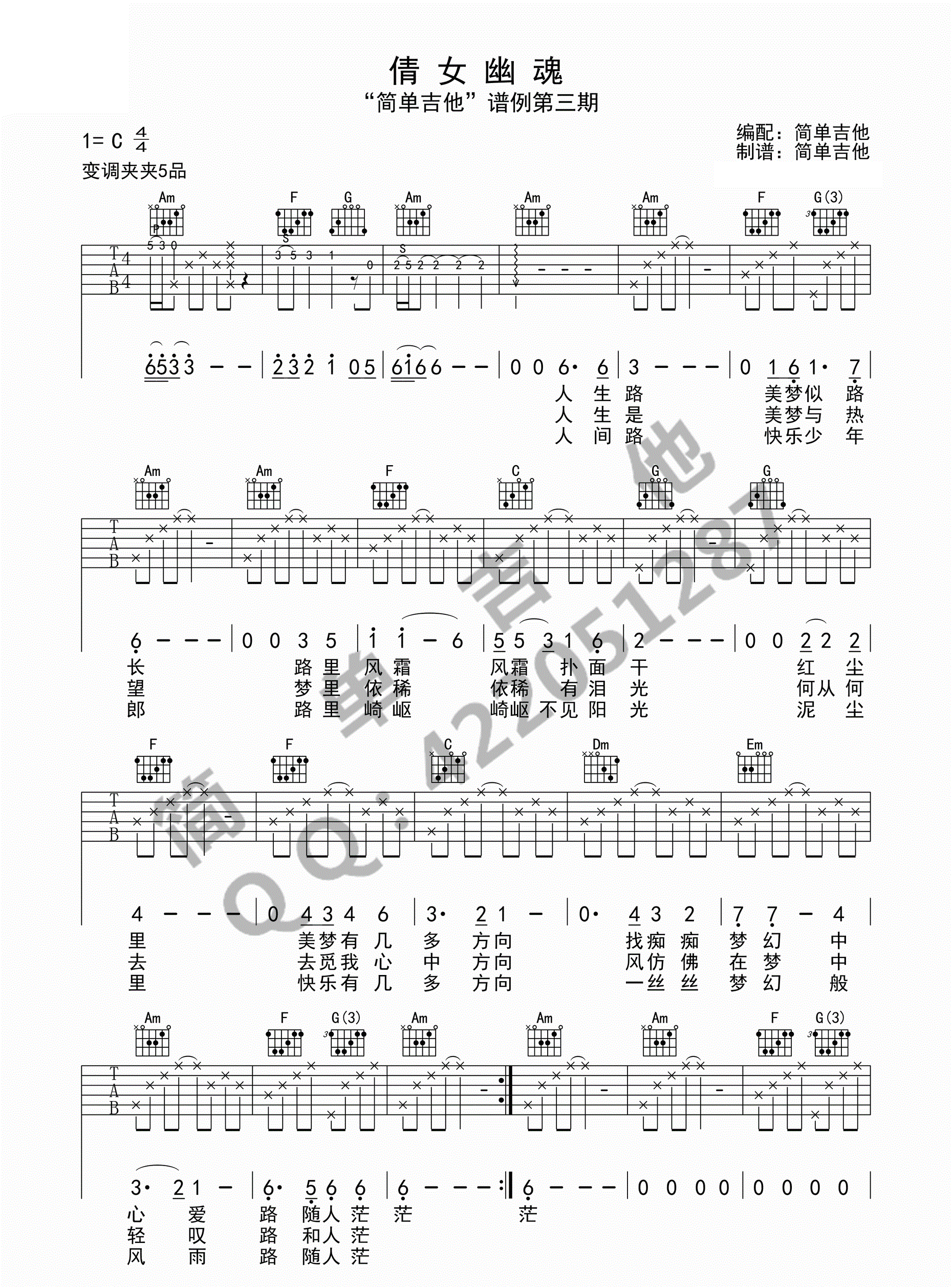 当前位置:琴谱网>吉他弹唱>倩女幽魂 张国荣 C调版六线