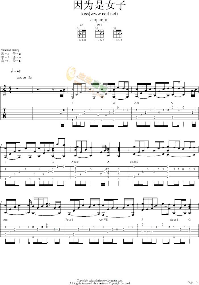 因为是女子吉他谱 - 因为是女子|琴结|0 - 吉他弹唱谱
