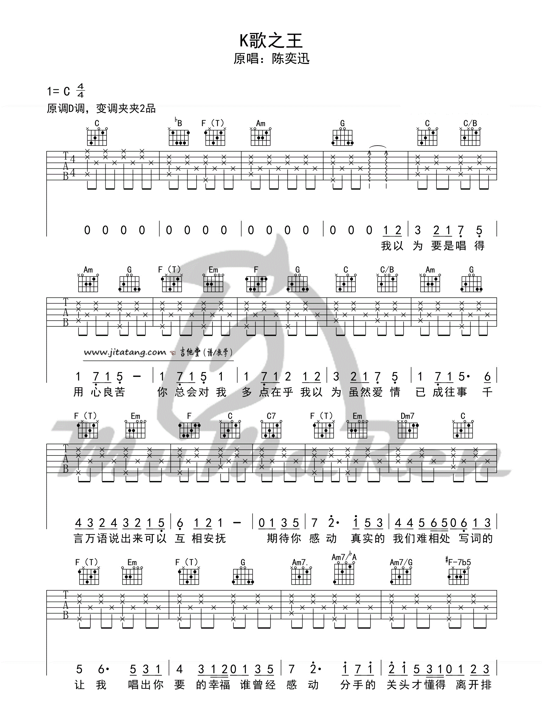 K歌之王 陈奕迅 C调六线吉他谱 - K歌之王 - C调吉他弹唱谱