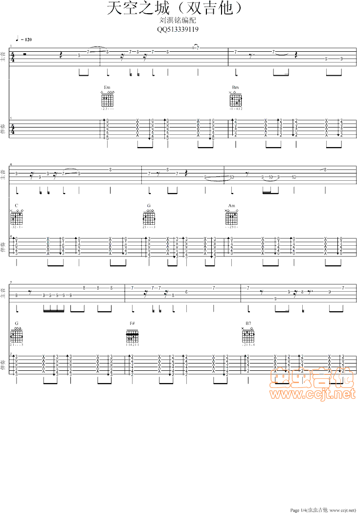 当前位置:琴谱网>吉他弹唱>天空之城双吉他