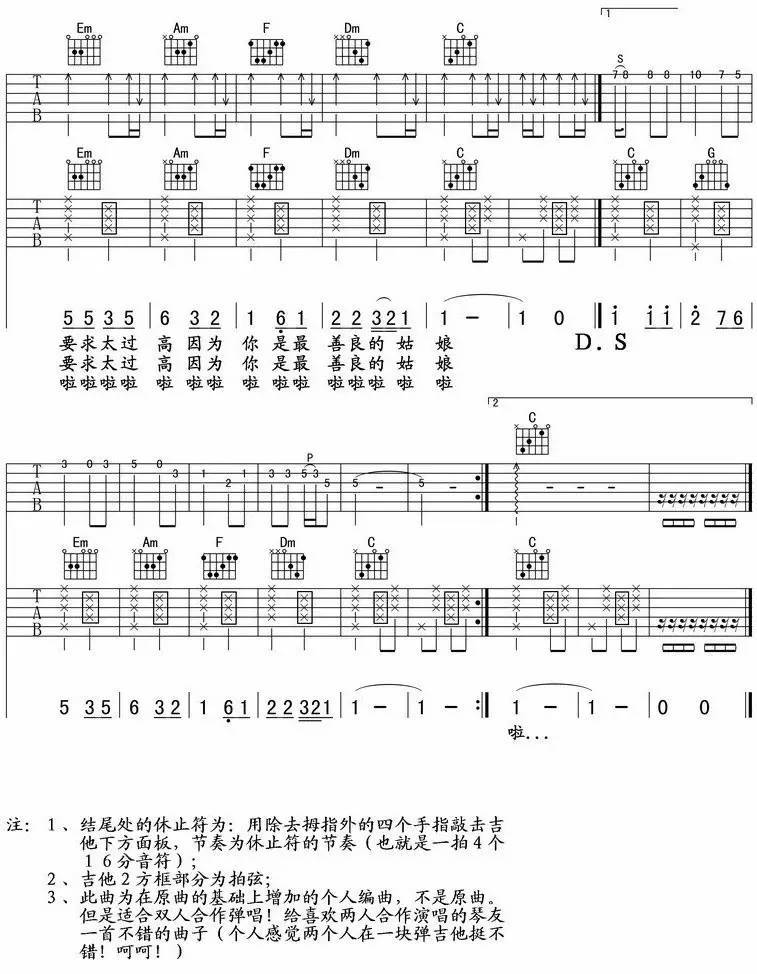 当前位置:琴谱网>吉他弹唱>没有车没有房 孙辉 D调六线
