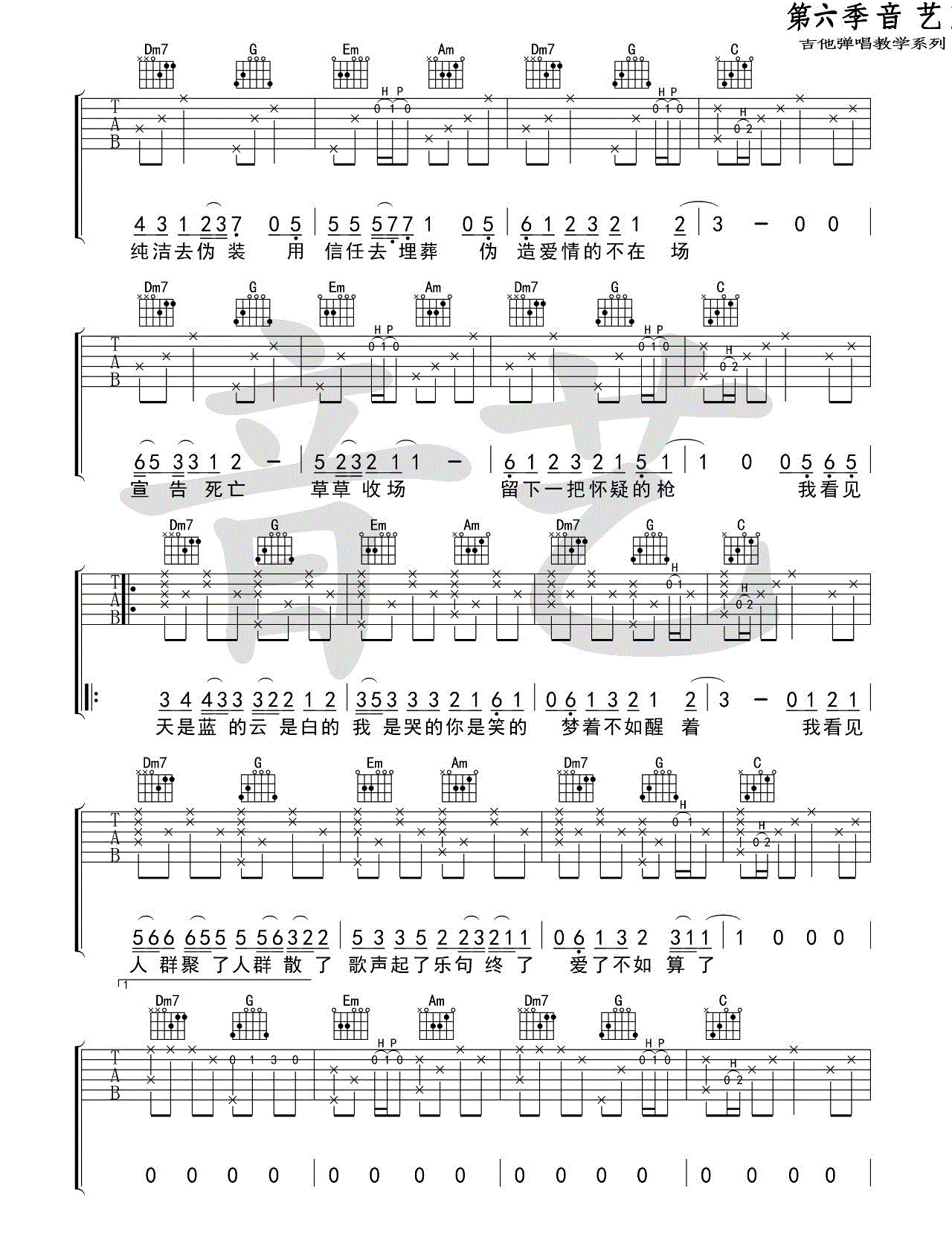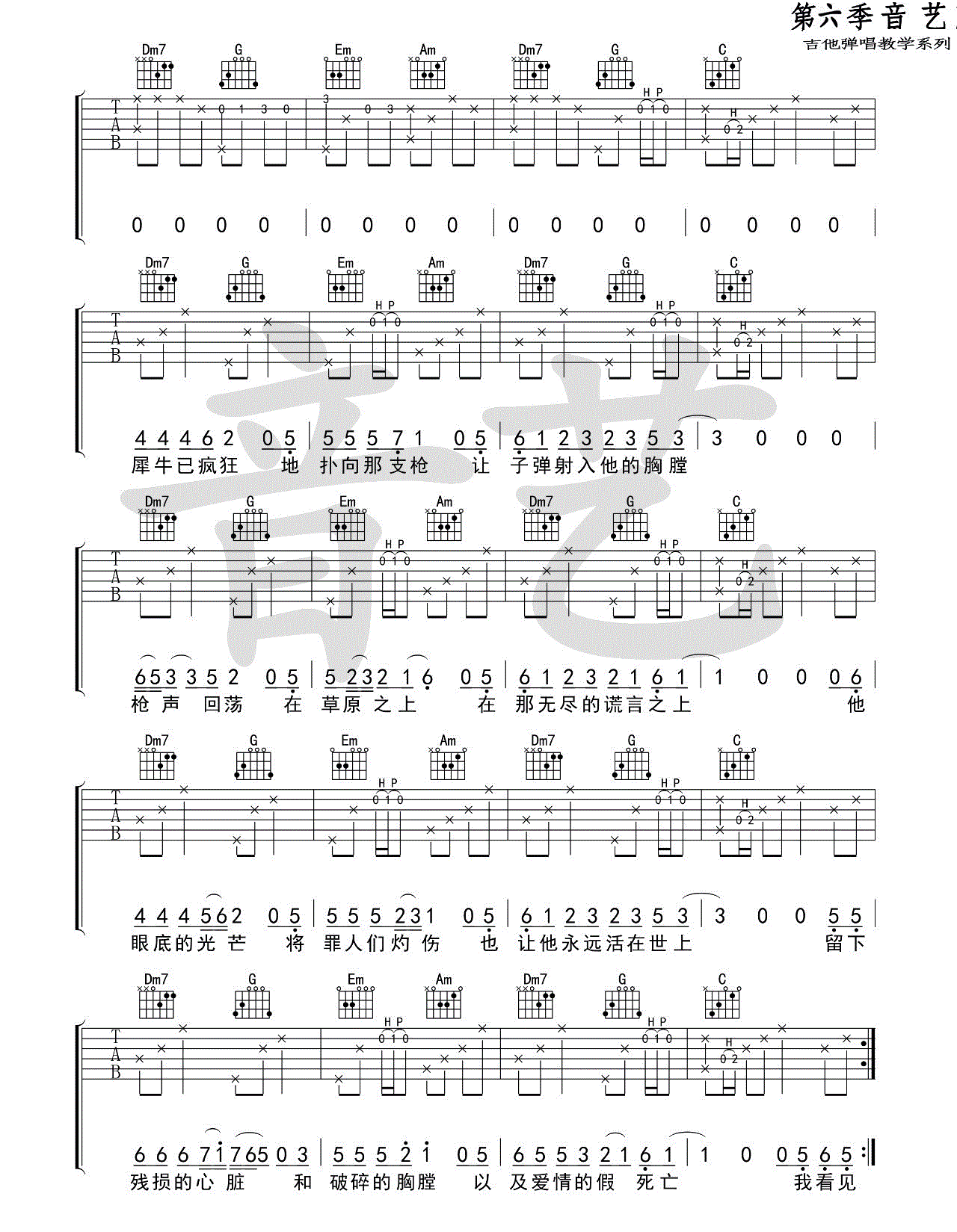 当前位置:琴谱网>吉他弹唱>恋爱的犀牛 黄雨篱 六线
