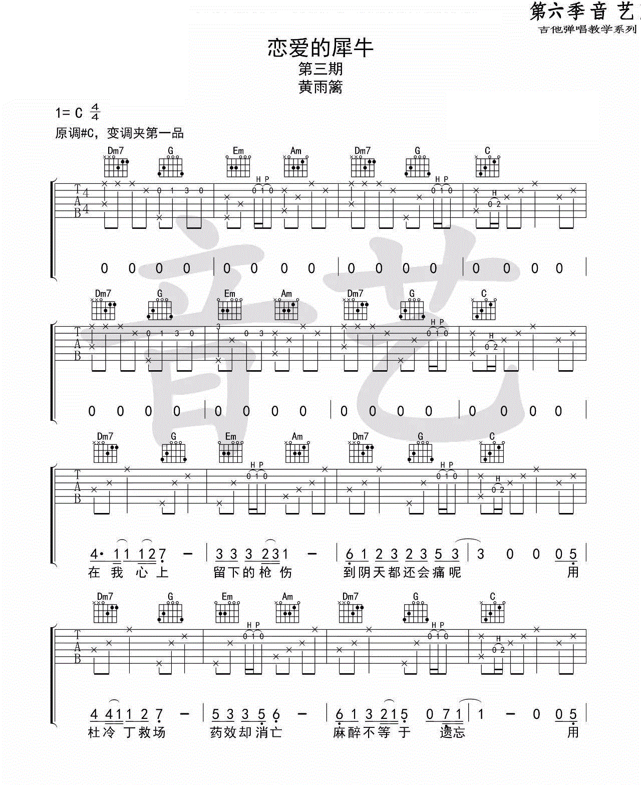 恋爱的犀牛 黄雨篱 六线吉他谱 - 恋爱的犀牛 - 吉他弹唱谱