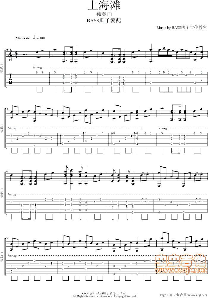 上海滩(Bass顺子版)吉他谱 - 吉他弹唱谱