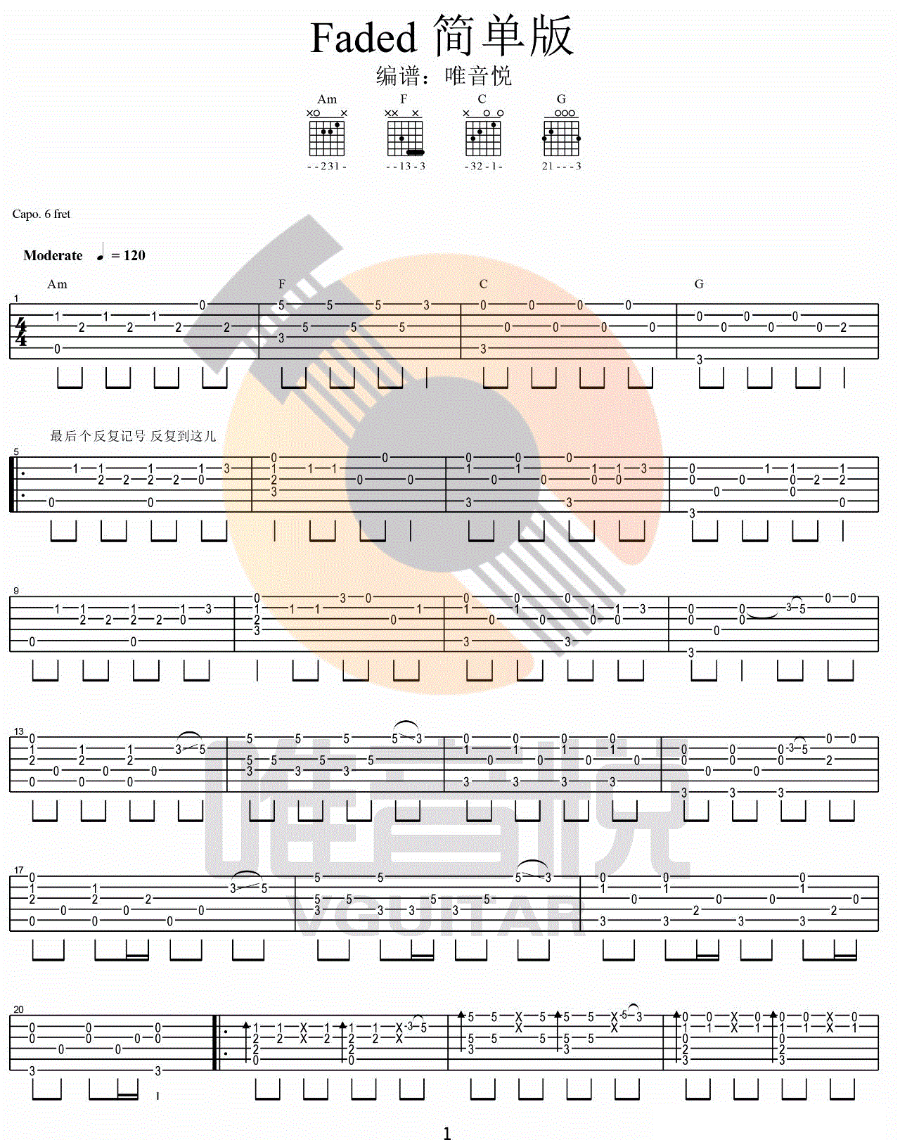 曲谱介绍: Faded《FadedAlanWalker图片》吉他弹唱谱,共有2张高清图谱,免翻页排版设计。