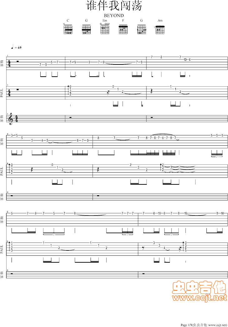 谁伴我闯荡吉他谱 - 吉他弹唱谱