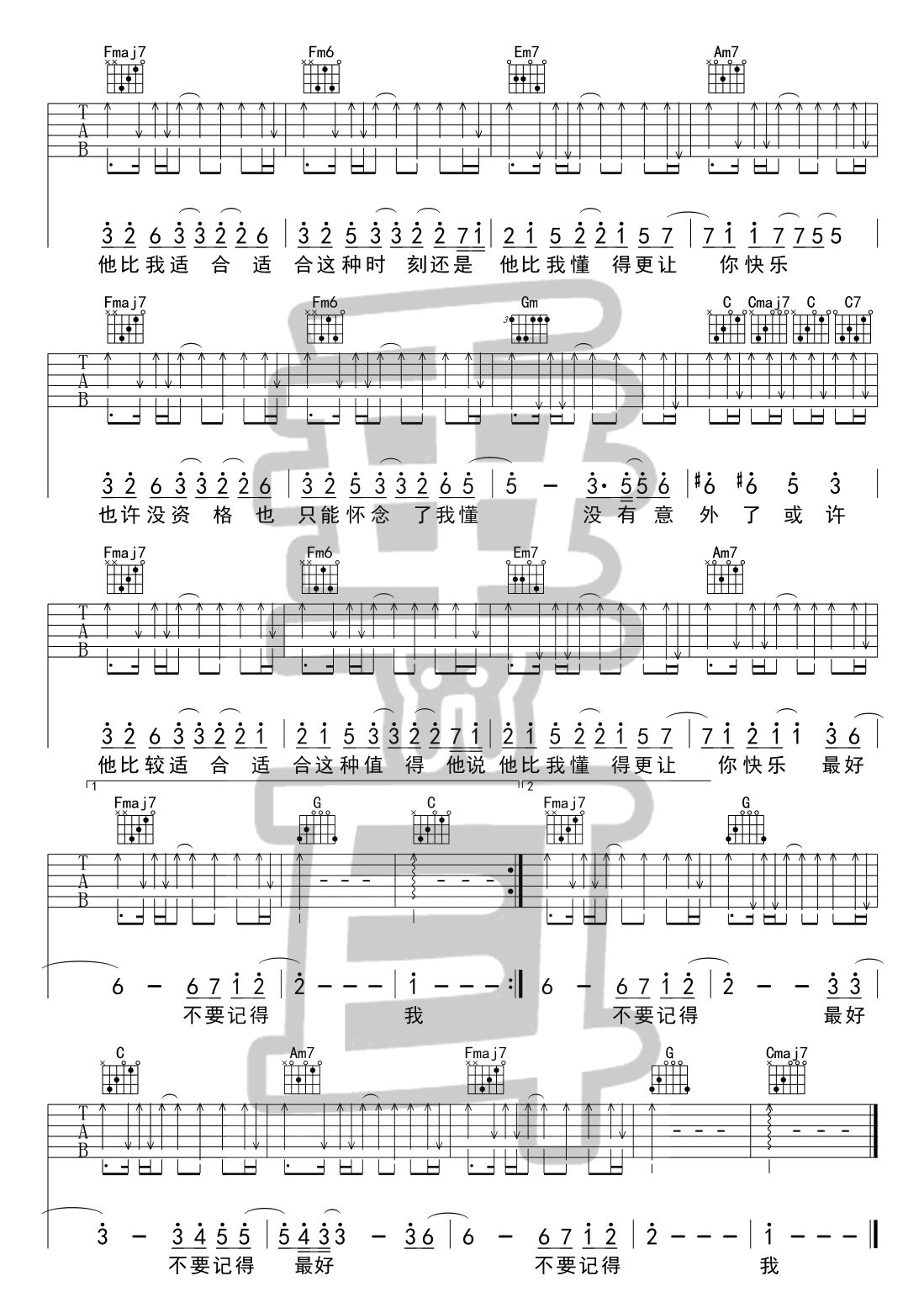 当前位置:琴谱网>吉他弹唱>最好 薛之谦 C调指法完整版