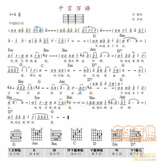 当前位置:琴谱网>吉他弹唱>千言万语