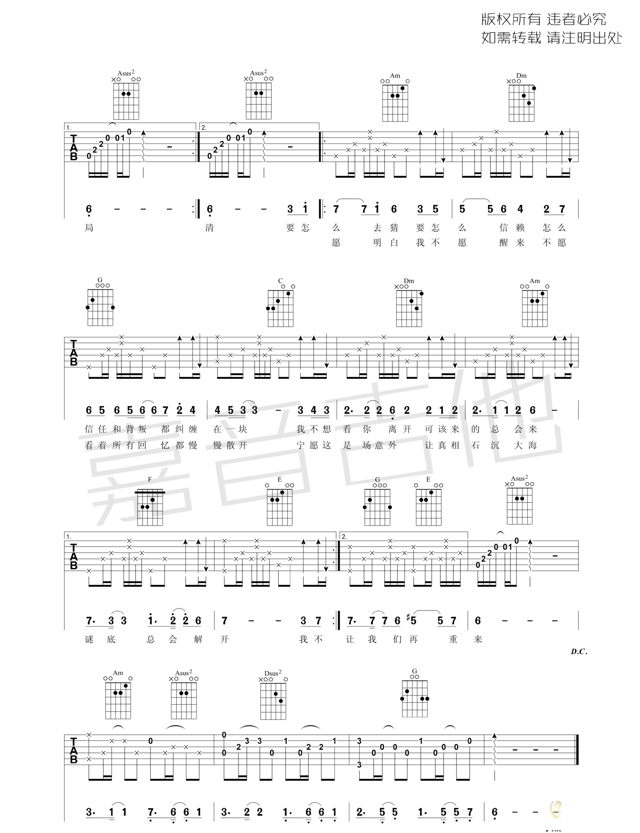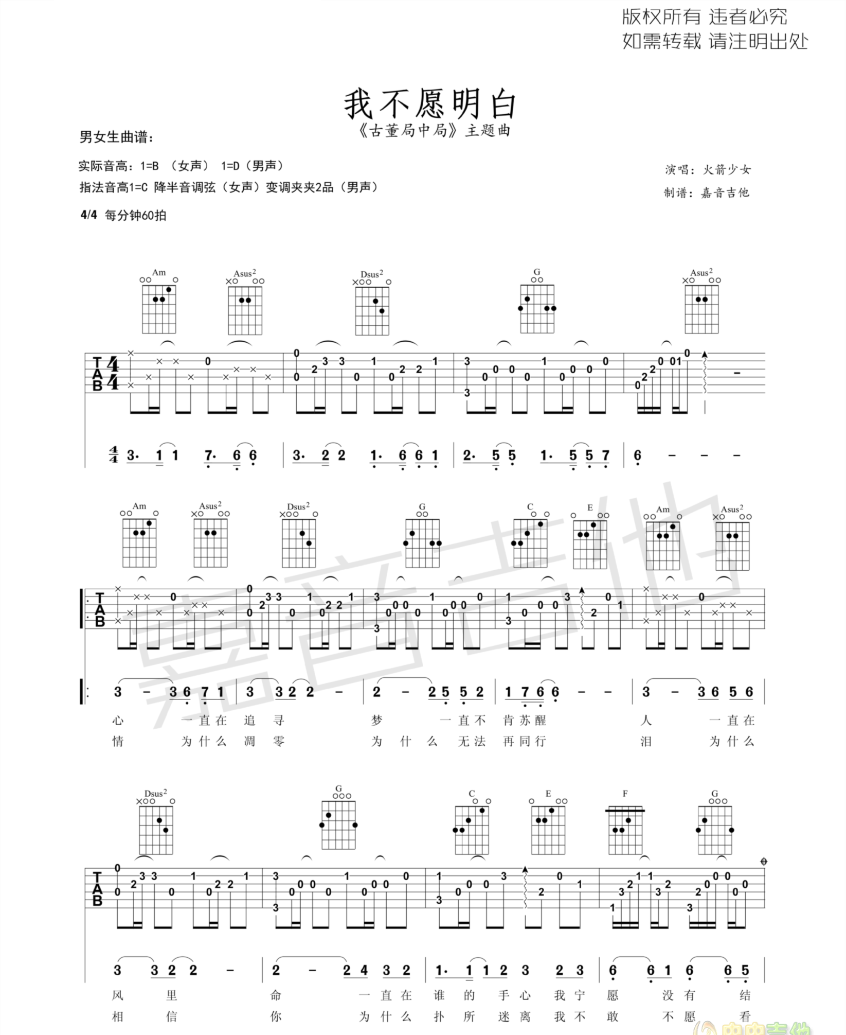 我不愿明白 古董局中局主题 图片吉他谱 - 我不愿明白 - 吉他弹唱谱
