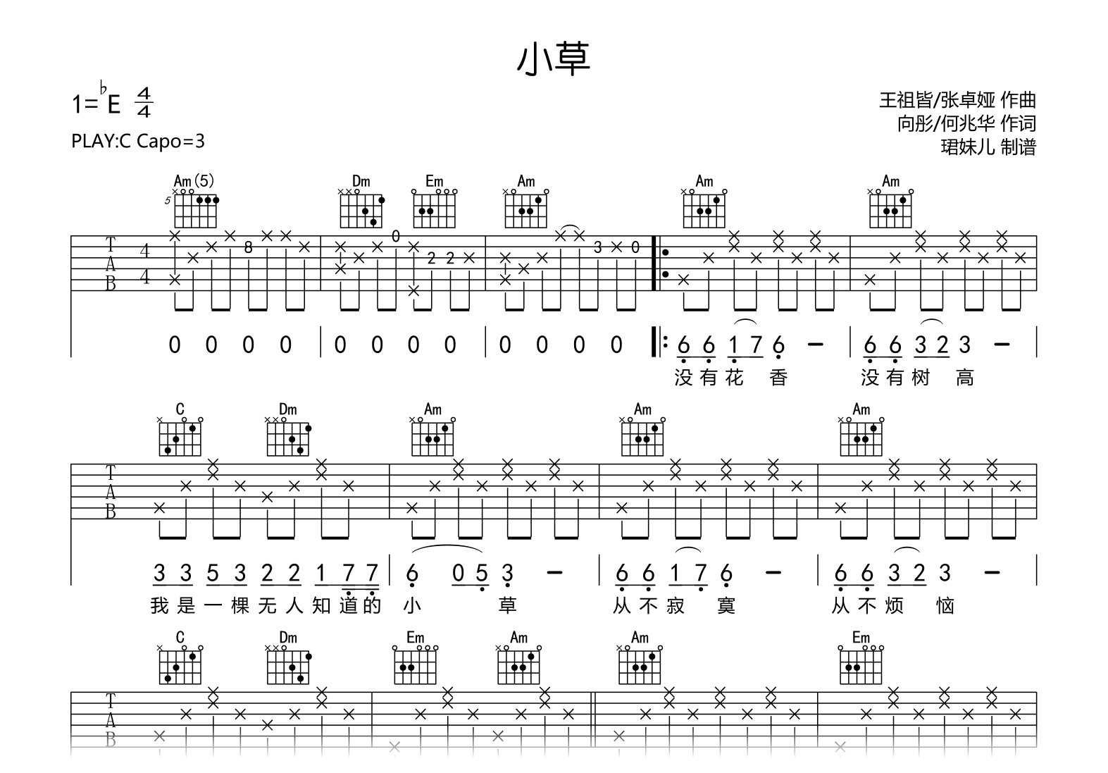 小草吉他谱 - 儿歌 - C调吉他弹唱谱
