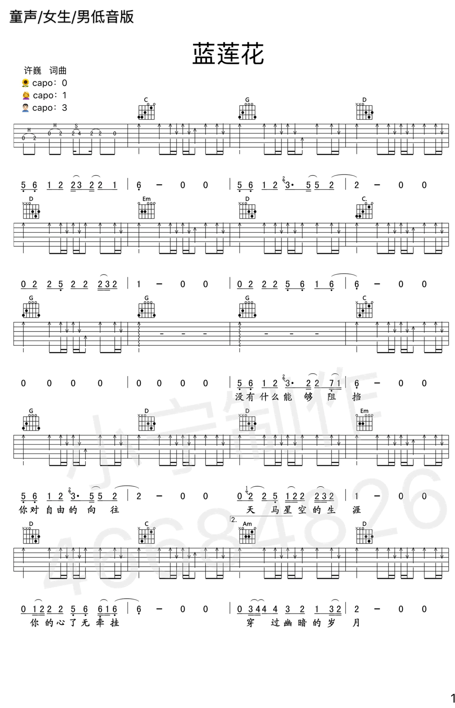 当前位置:琴谱网>吉他弹唱>蓝莲花