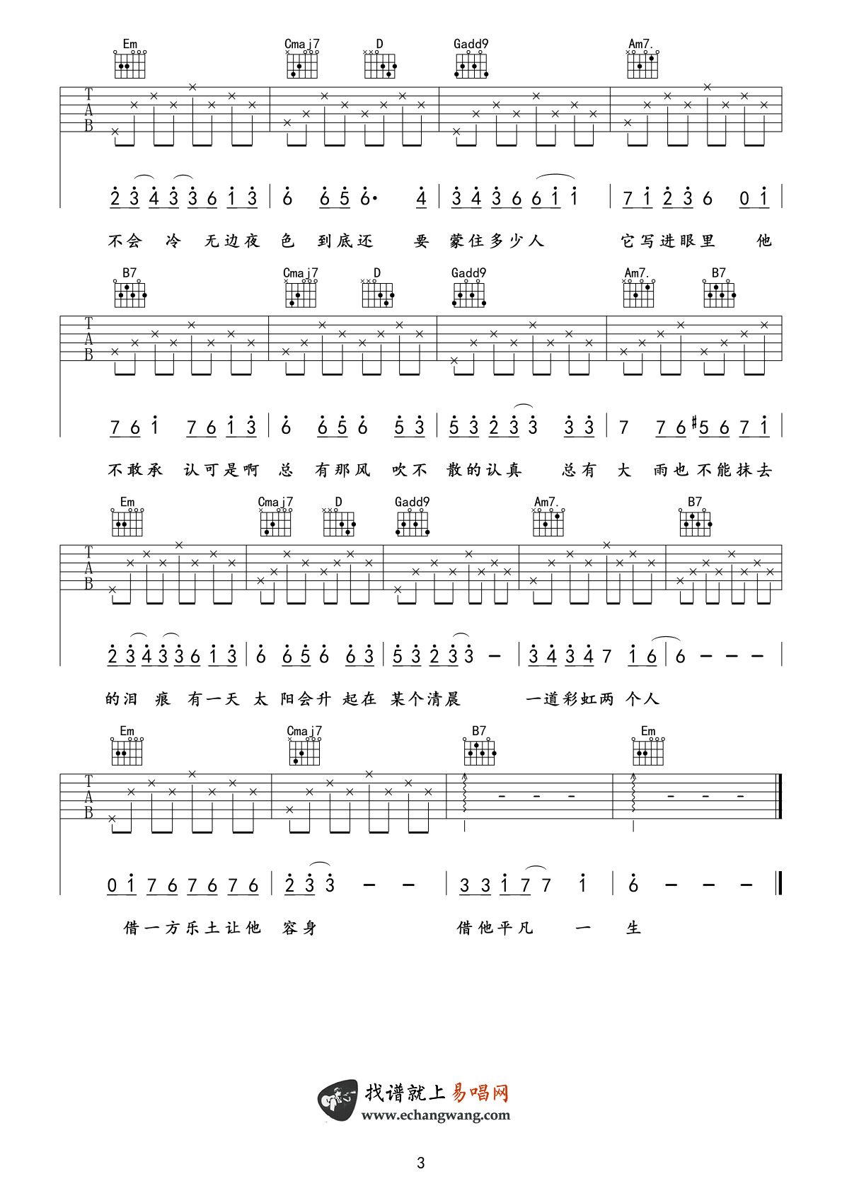 曲谱介绍: 毛不易《借》吉他弹唱谱,共有3张高清图谱。