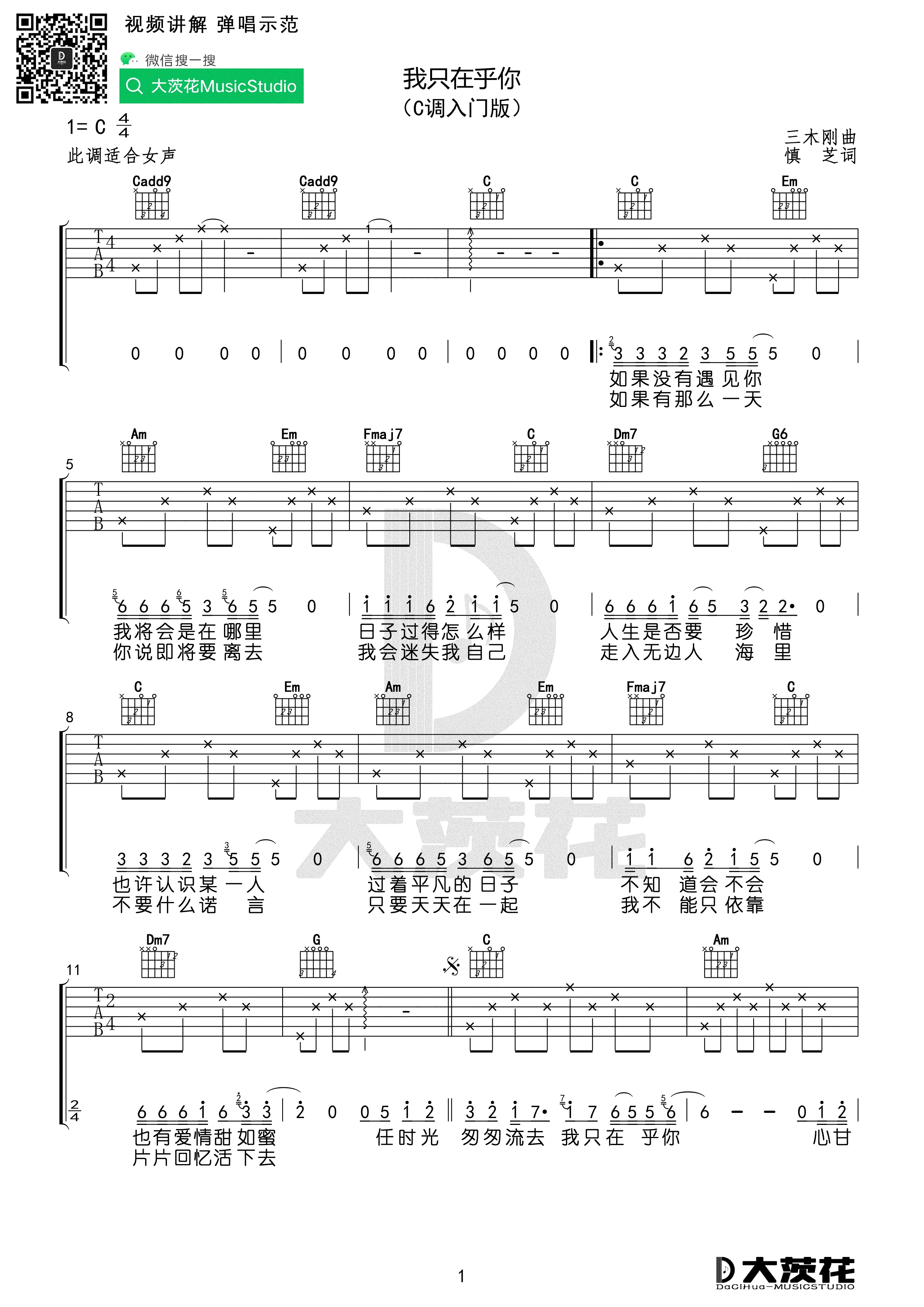 当前位置:琴谱网>吉他弹唱>我只在乎你