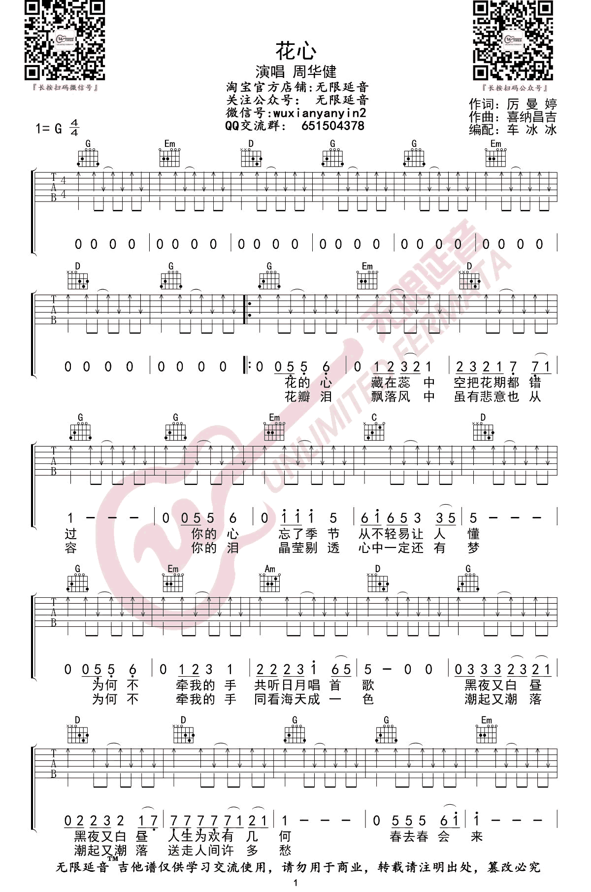 花心吉他谱 - 周华健 - 吉他弹唱谱