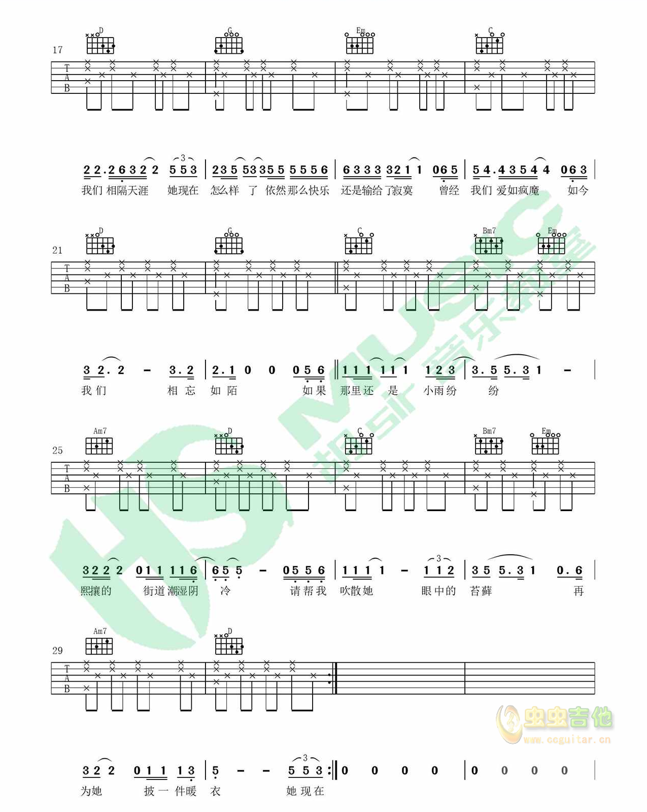 紫罗兰发带 汪峰 图片吉他谱 - 紫罗兰发带 - 吉他弹唱谱