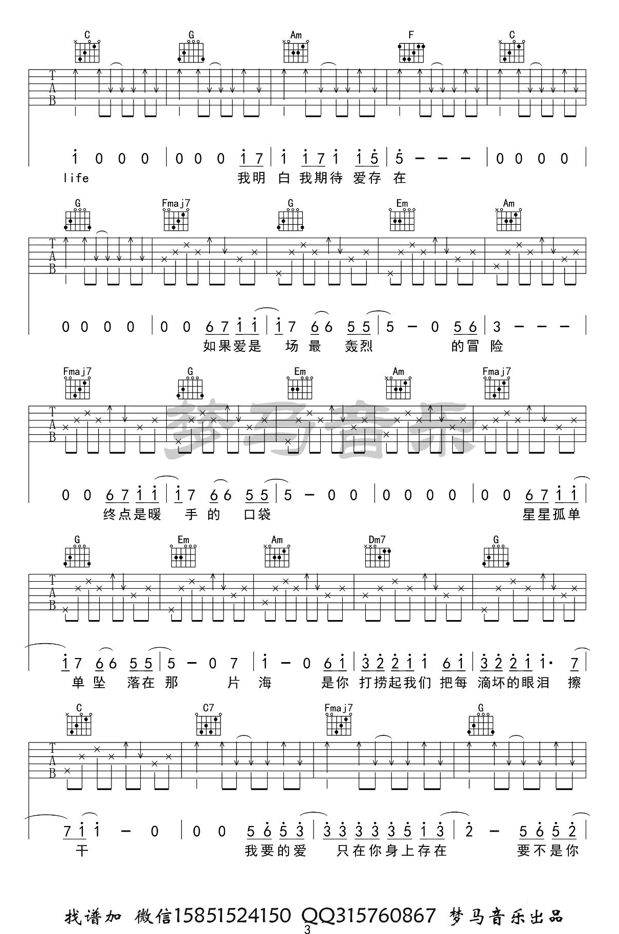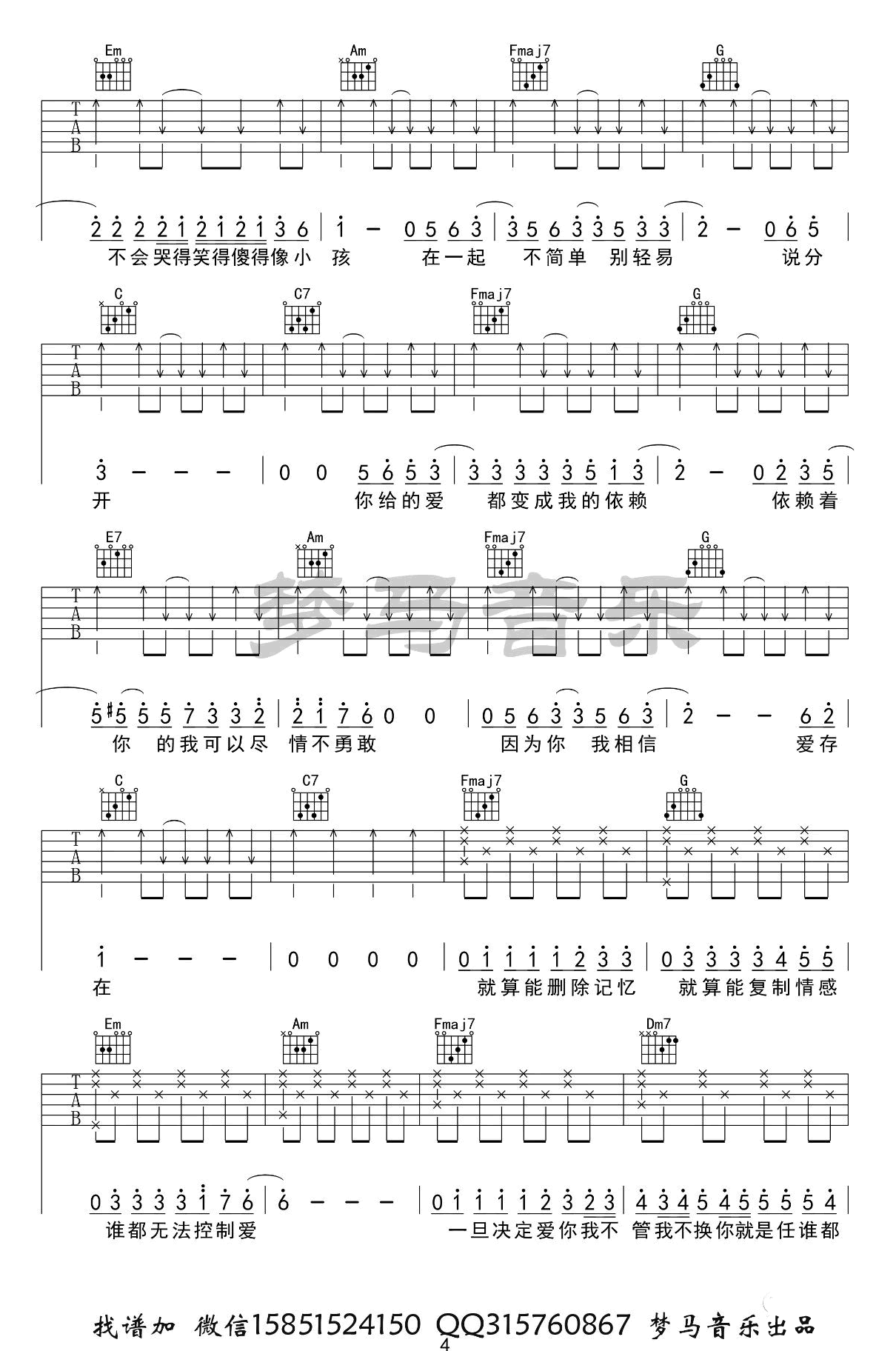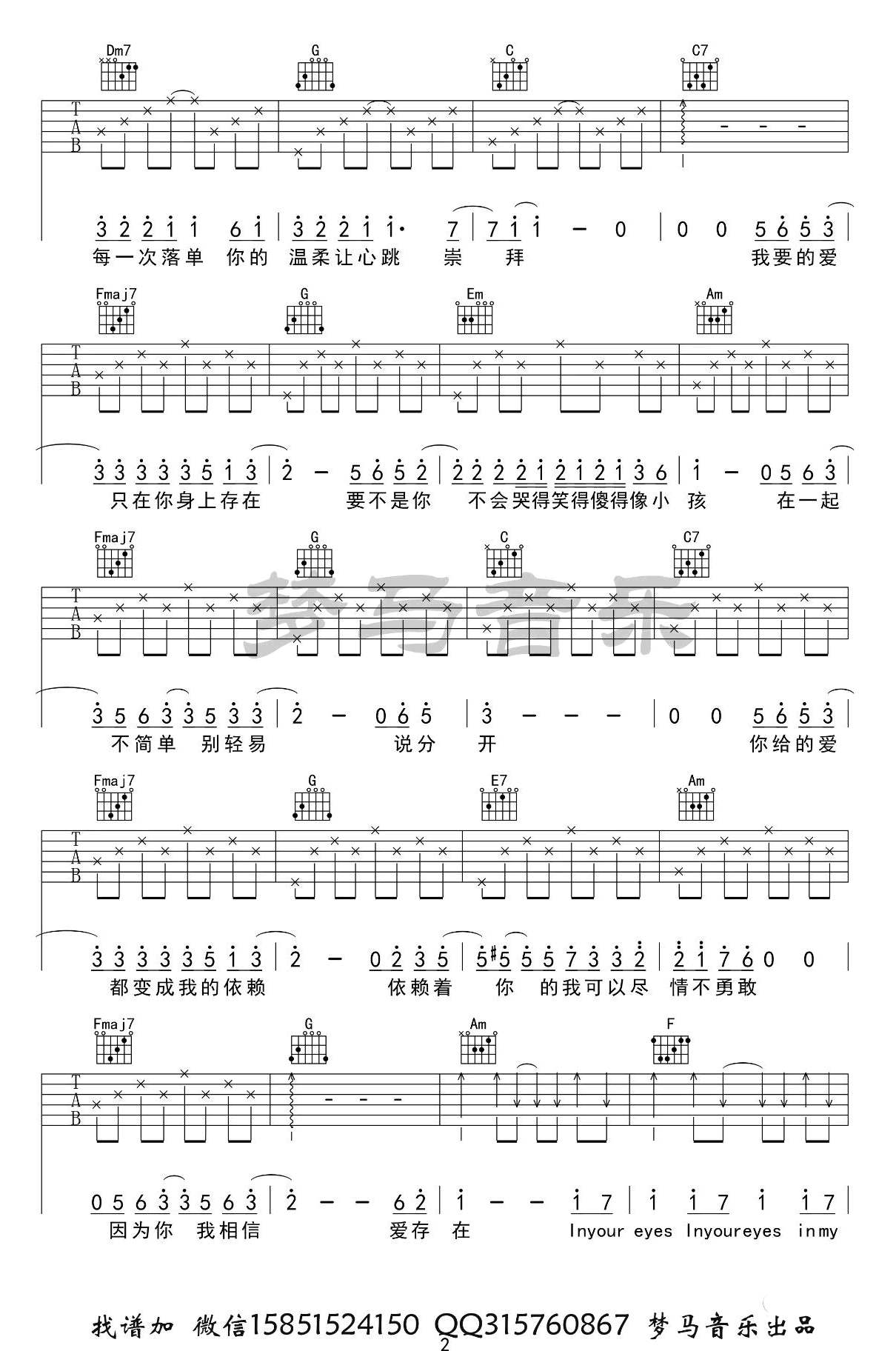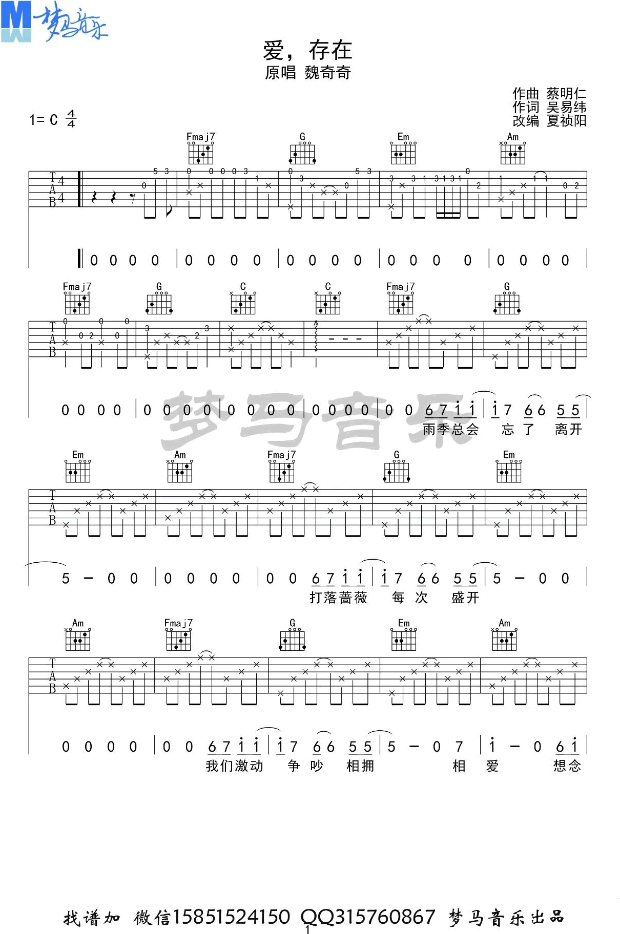 爱存在吉他谱 - 魏奇奇 - 吉他弹唱谱