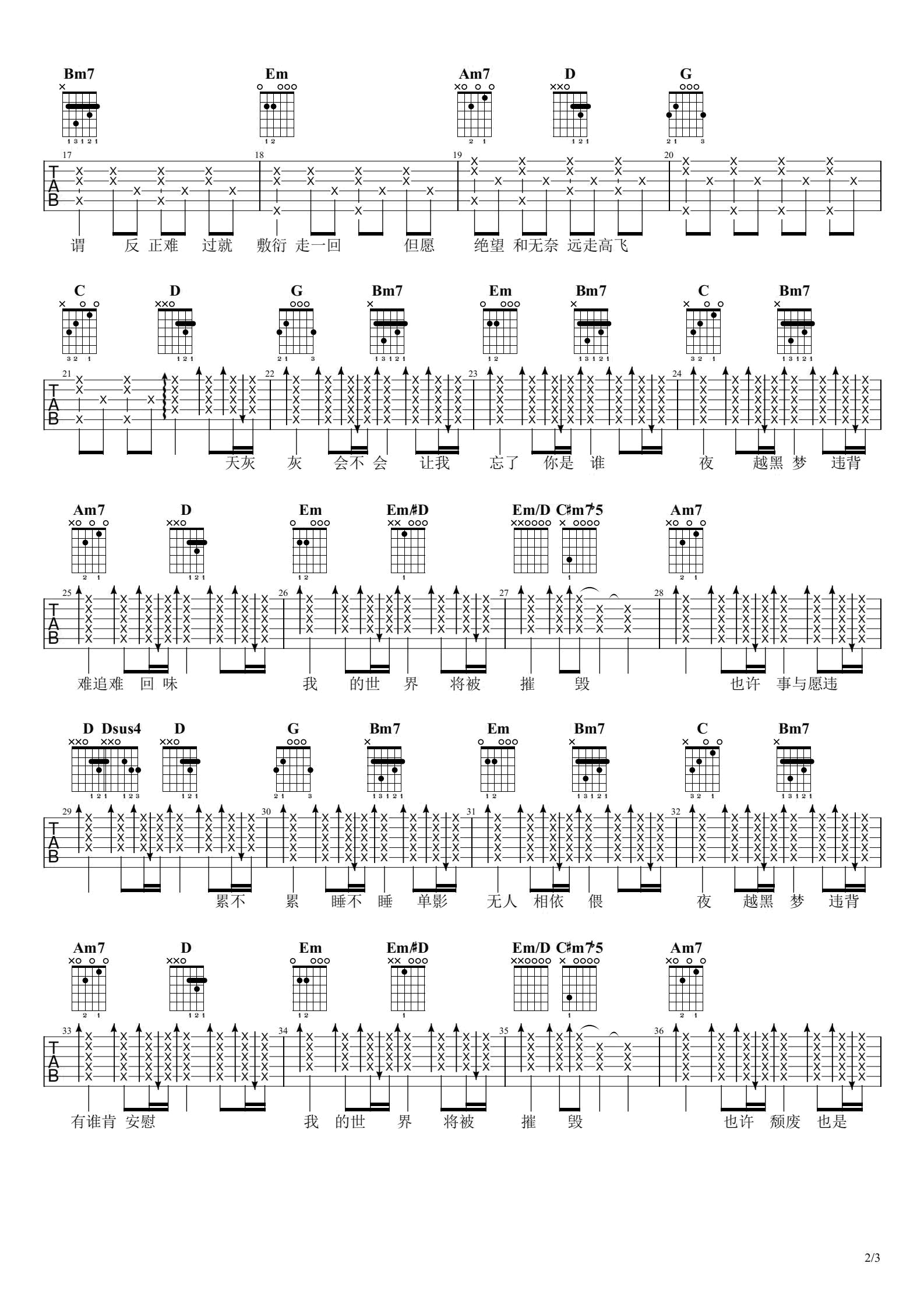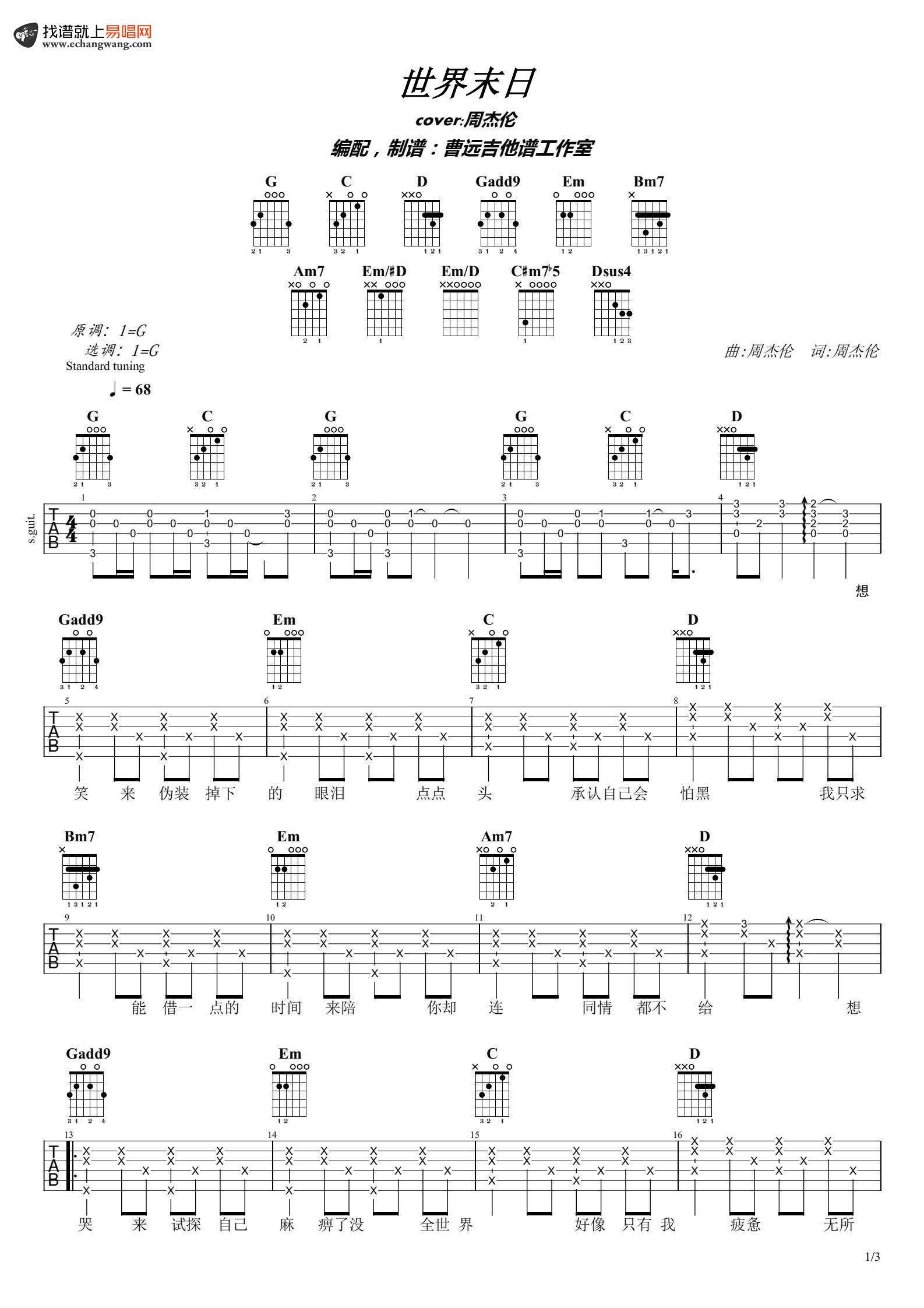 曲谱介绍: 周杰伦《世界末日》吉他弹唱谱,共有3张高清图谱。