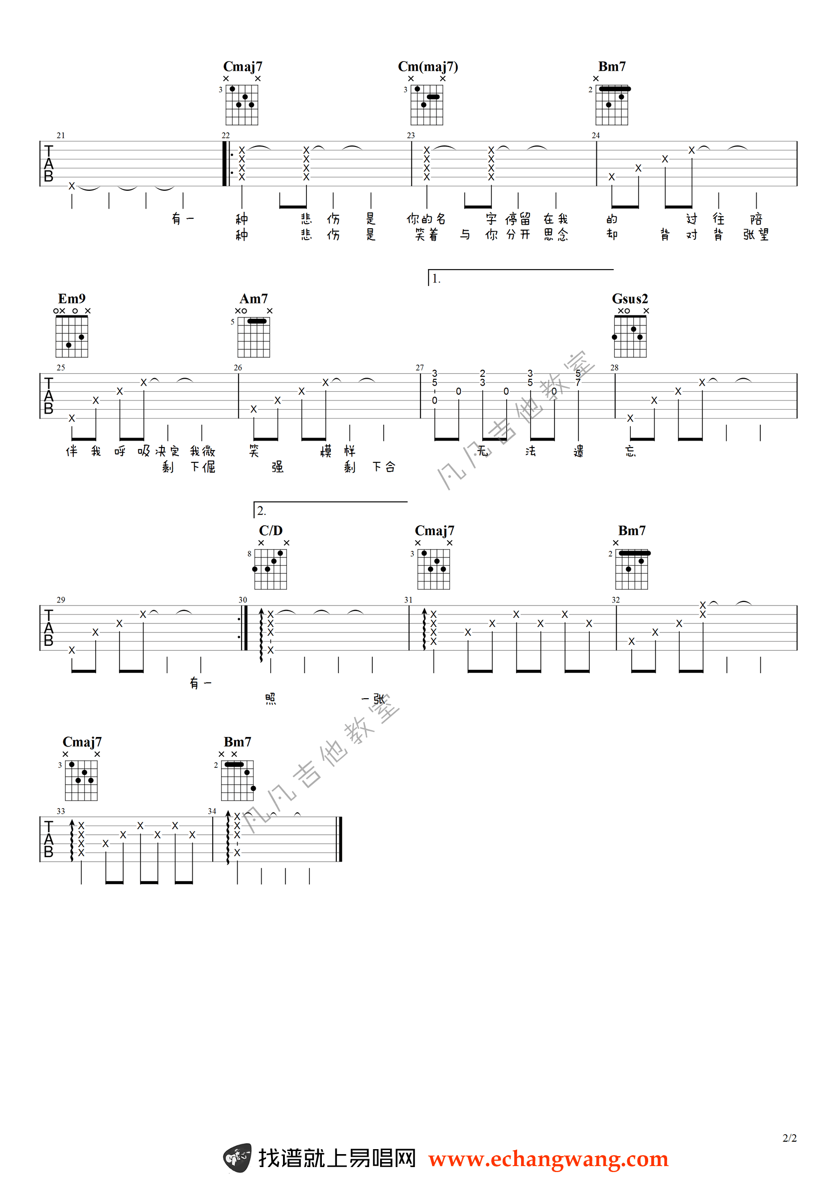 曲谱介绍: A《有一种悲伤》吉他弹唱谱,共有2张高清图谱,免翻页排版设计。