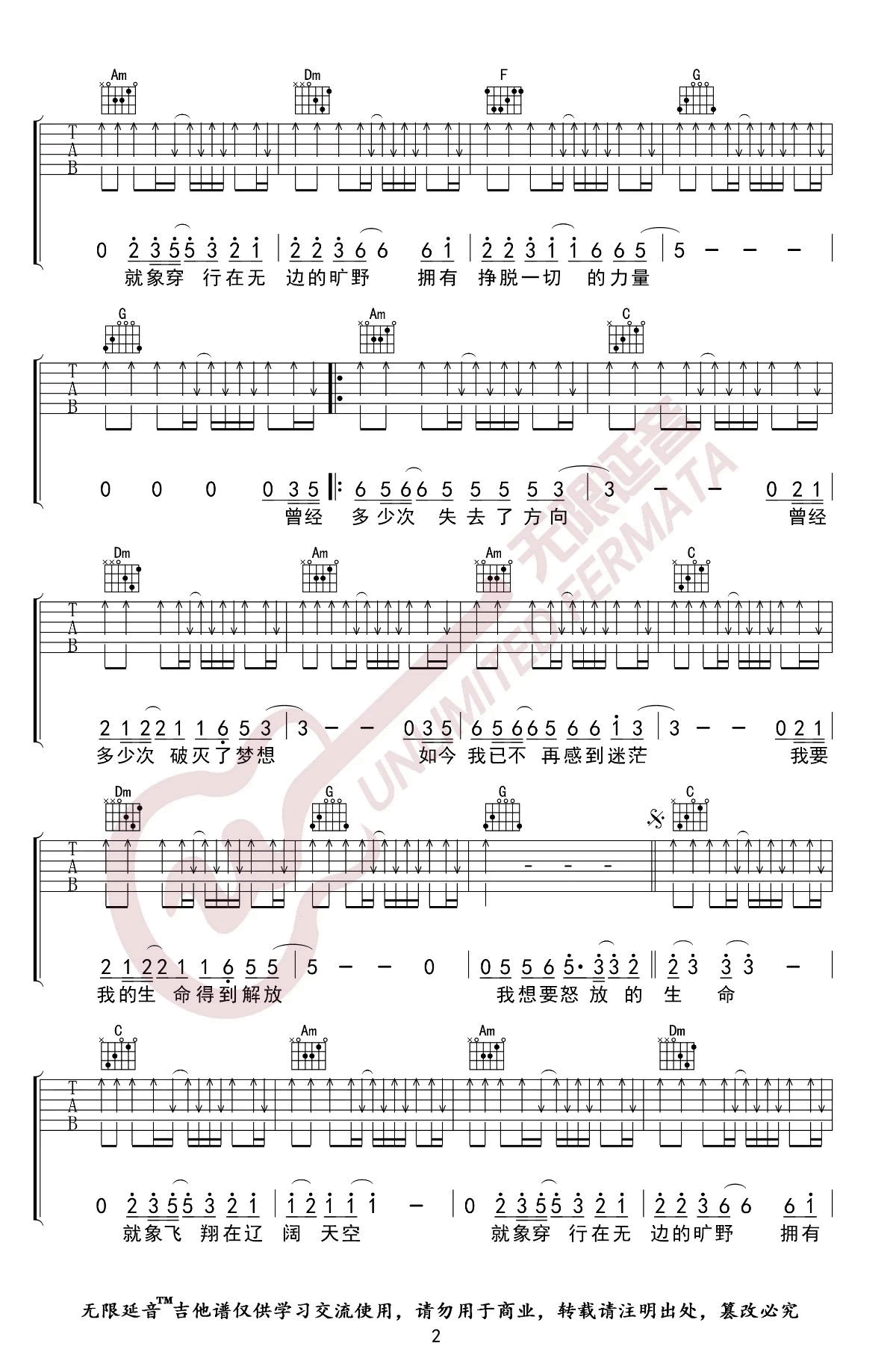 怒放的生命吉他谱 - 汪峰 - 吉他弹唱谱