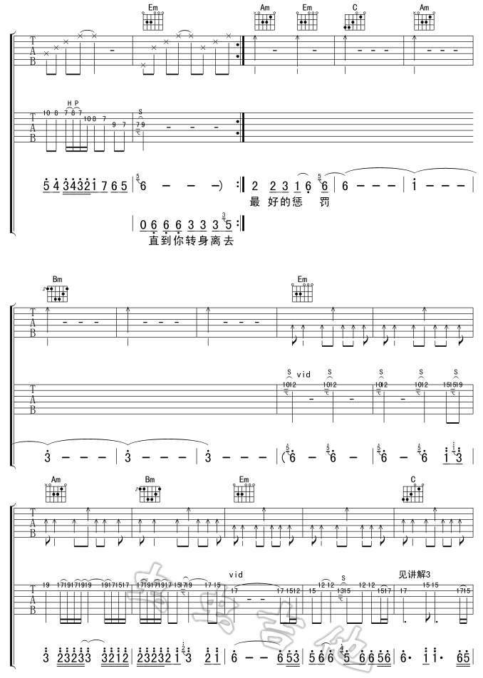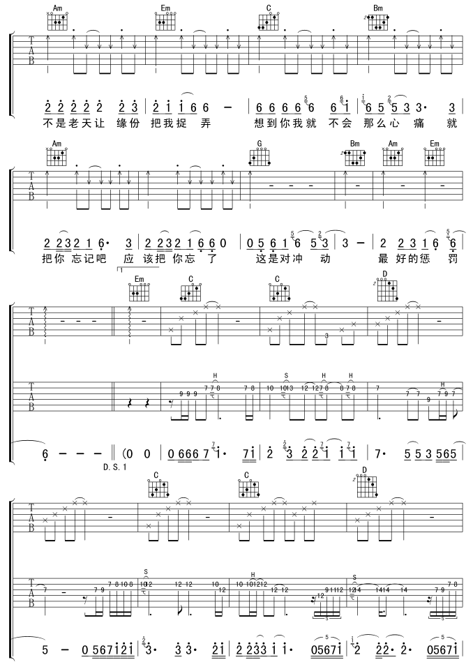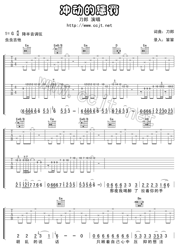 曲谱介绍: 《冲动的惩罚》吉他弹唱谱,共有7张高清图谱。