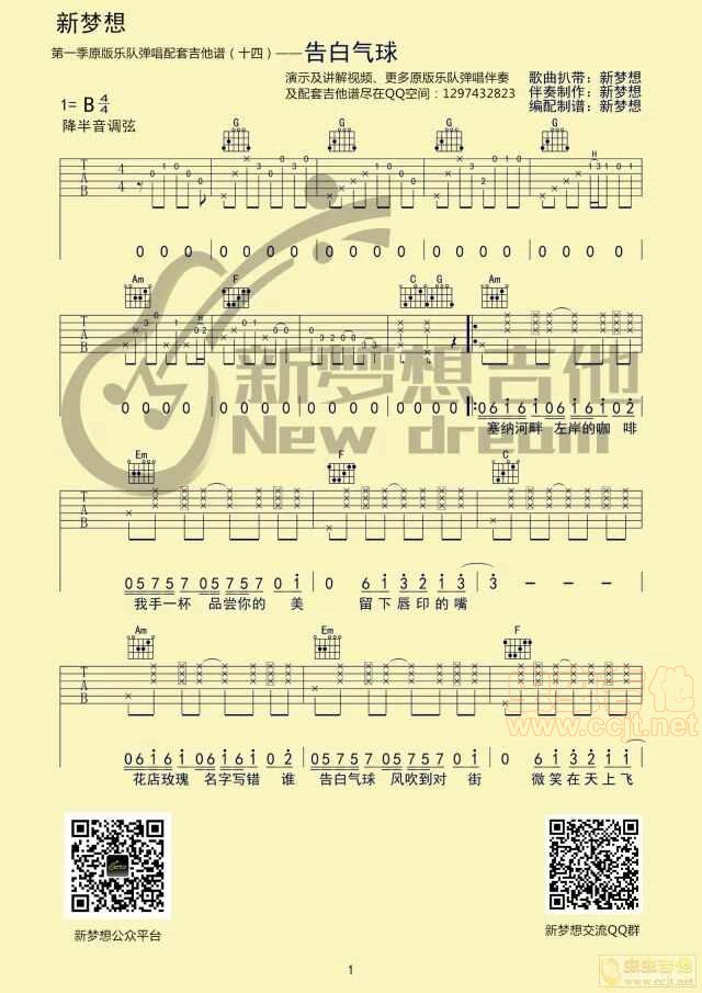 当前位置:琴谱网>吉他弹唱>周杰伦 告白气球