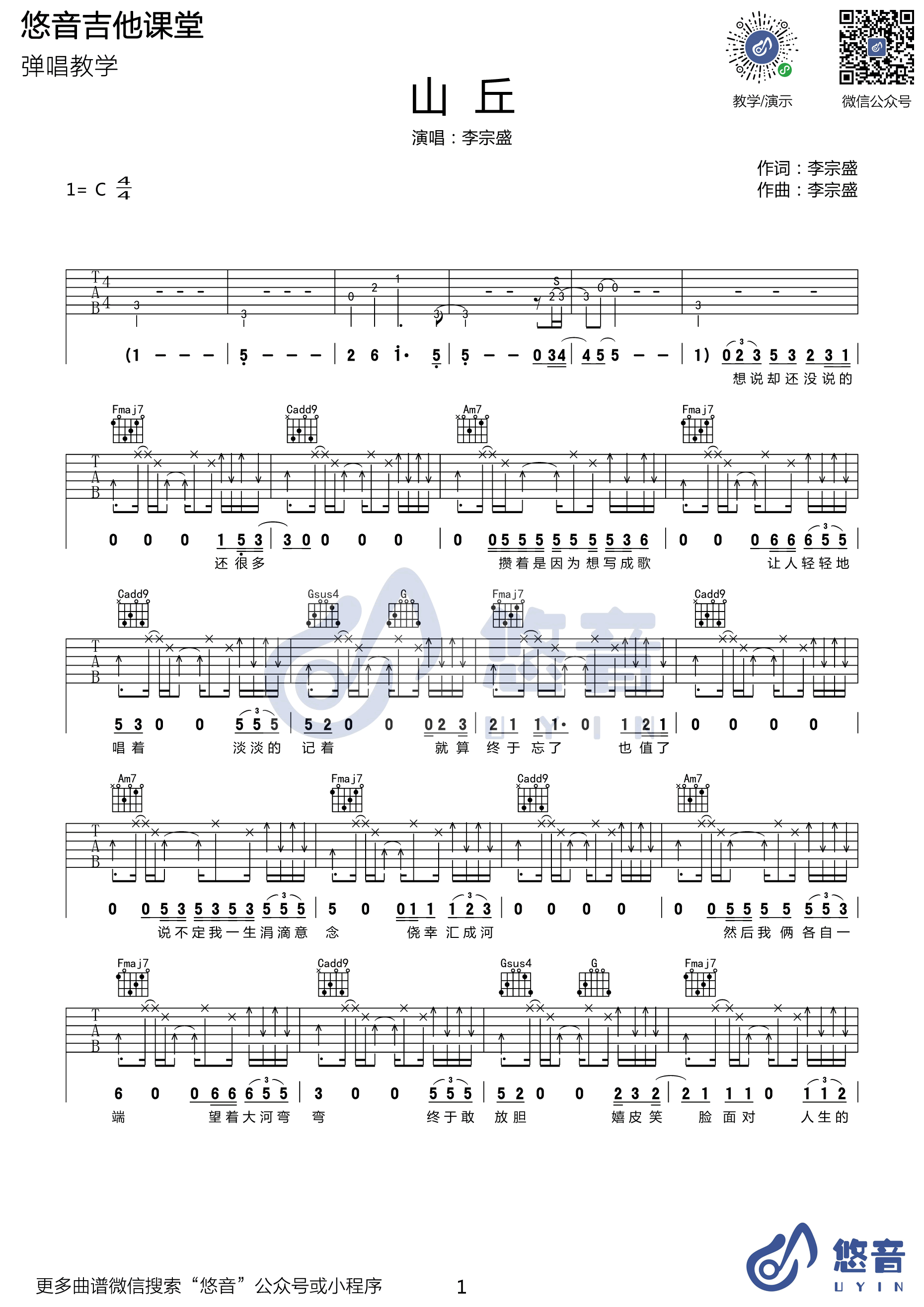 山丘吉他谱 - 李宗盛 - 吉他弹唱谱